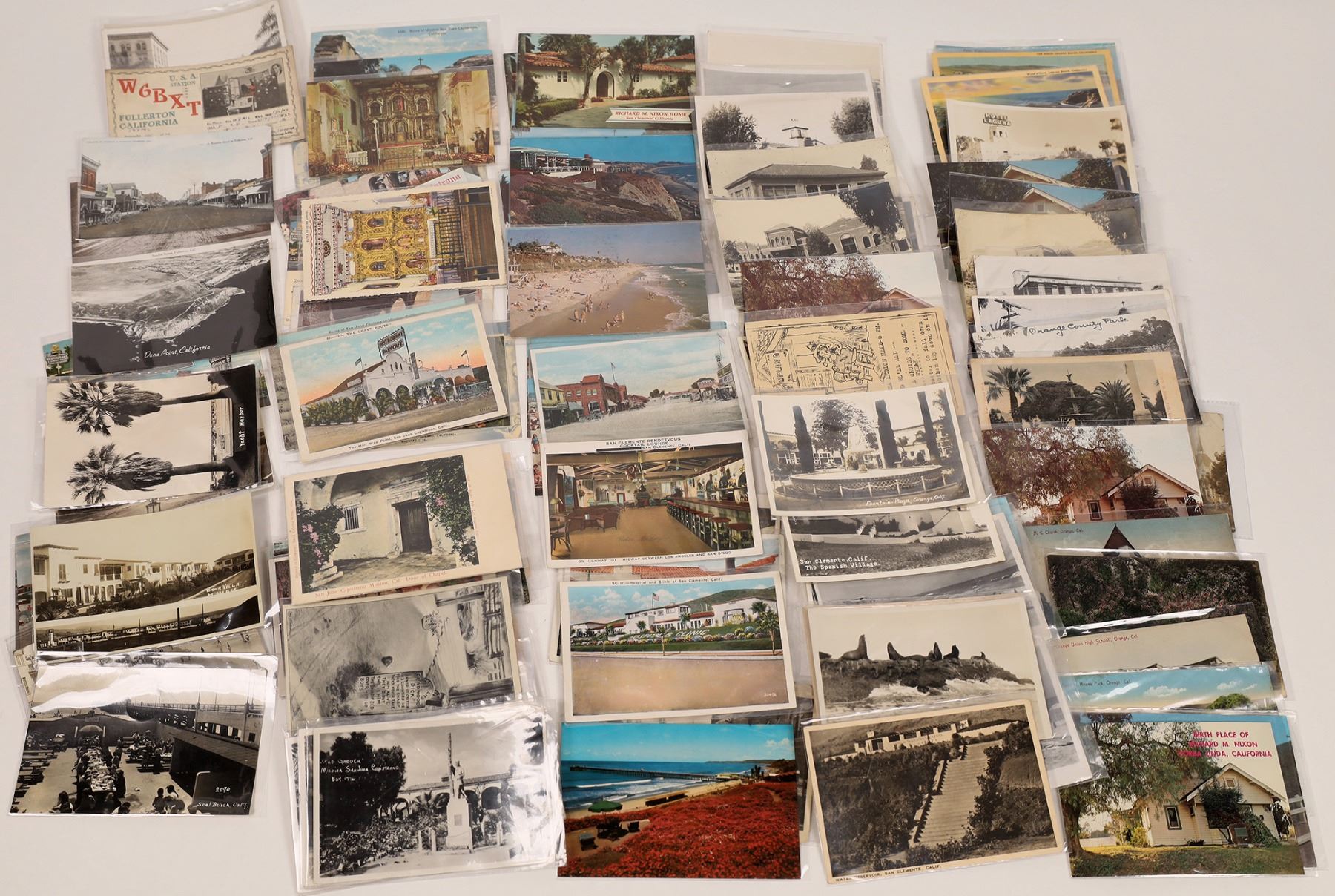 Fullerton: 3 RPCs, 1 color, 1 printed, 1 ham radio card; San Juan Capistrano: 21 color, 8 RPCs, 3 printed; Dana Point: 4 B&W with RPCs, 1 color; San Clemente: 20 color, 20 B&W with RPCs; Seal Beach: 2 RPCs, 2 color; Laguna Beach: 3 B&W including RPCs, 21 color; Anaheim: 3 color, 2 RPCs, 1 printed; Yorba Linda / Brea: 6 color; Orange: 4 chromoliths, 4 B&W RPCs, 2 litho; 1 printed.