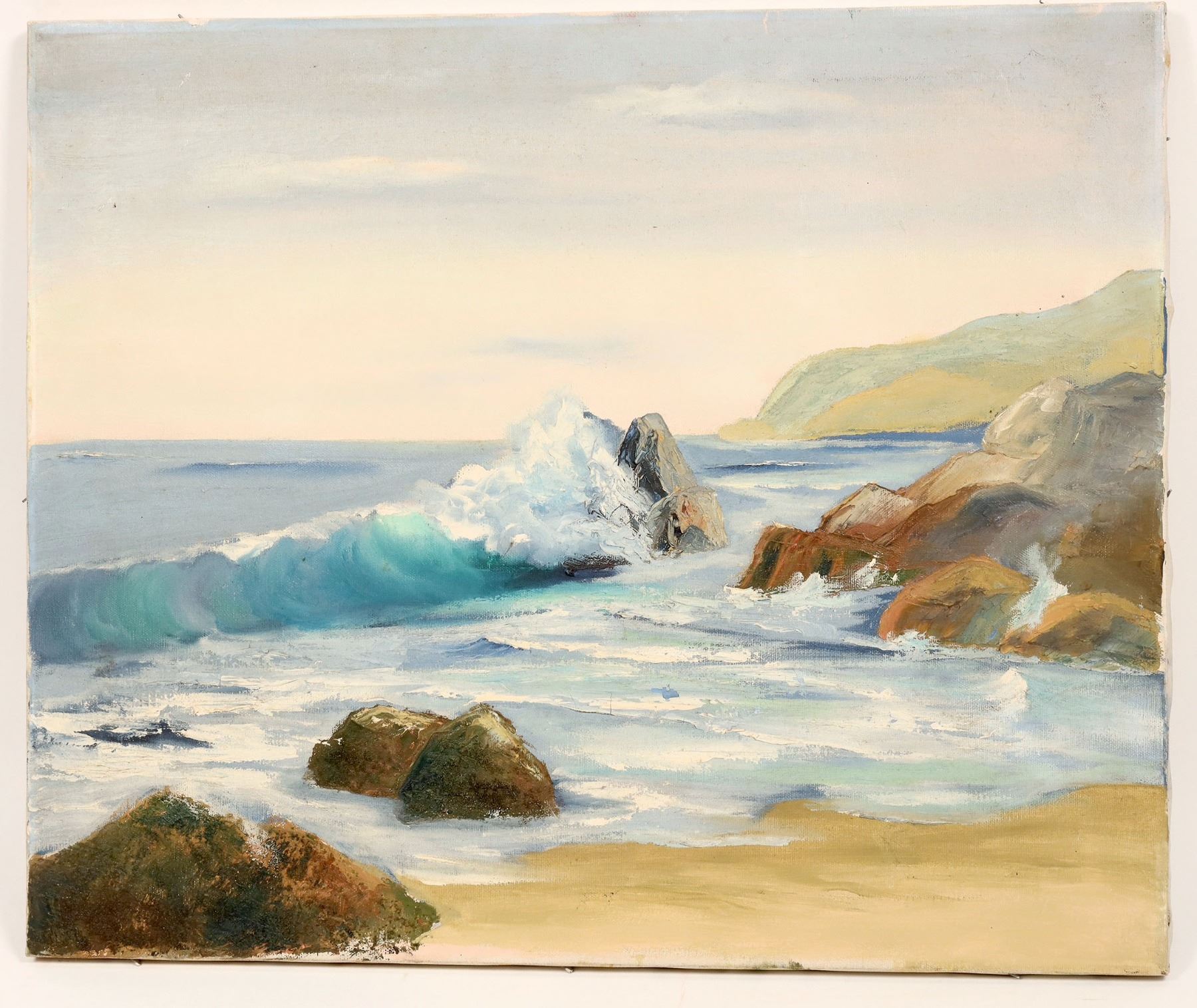 California seascape oil painting by an unknown artist. Unframed, 20x24". Some edge issues, please inspect.