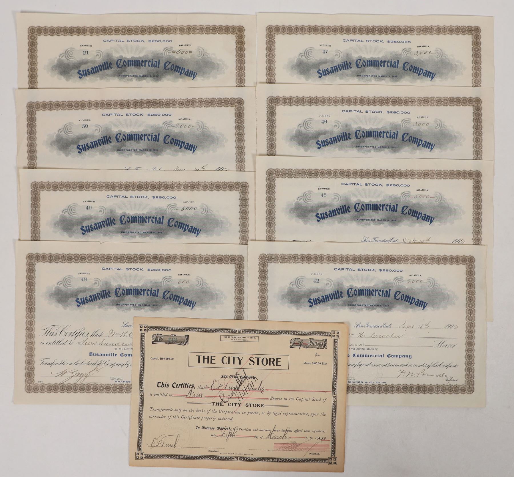 Issued-1x 1910 The City Store, 8x 1902 Susanville Commercial.