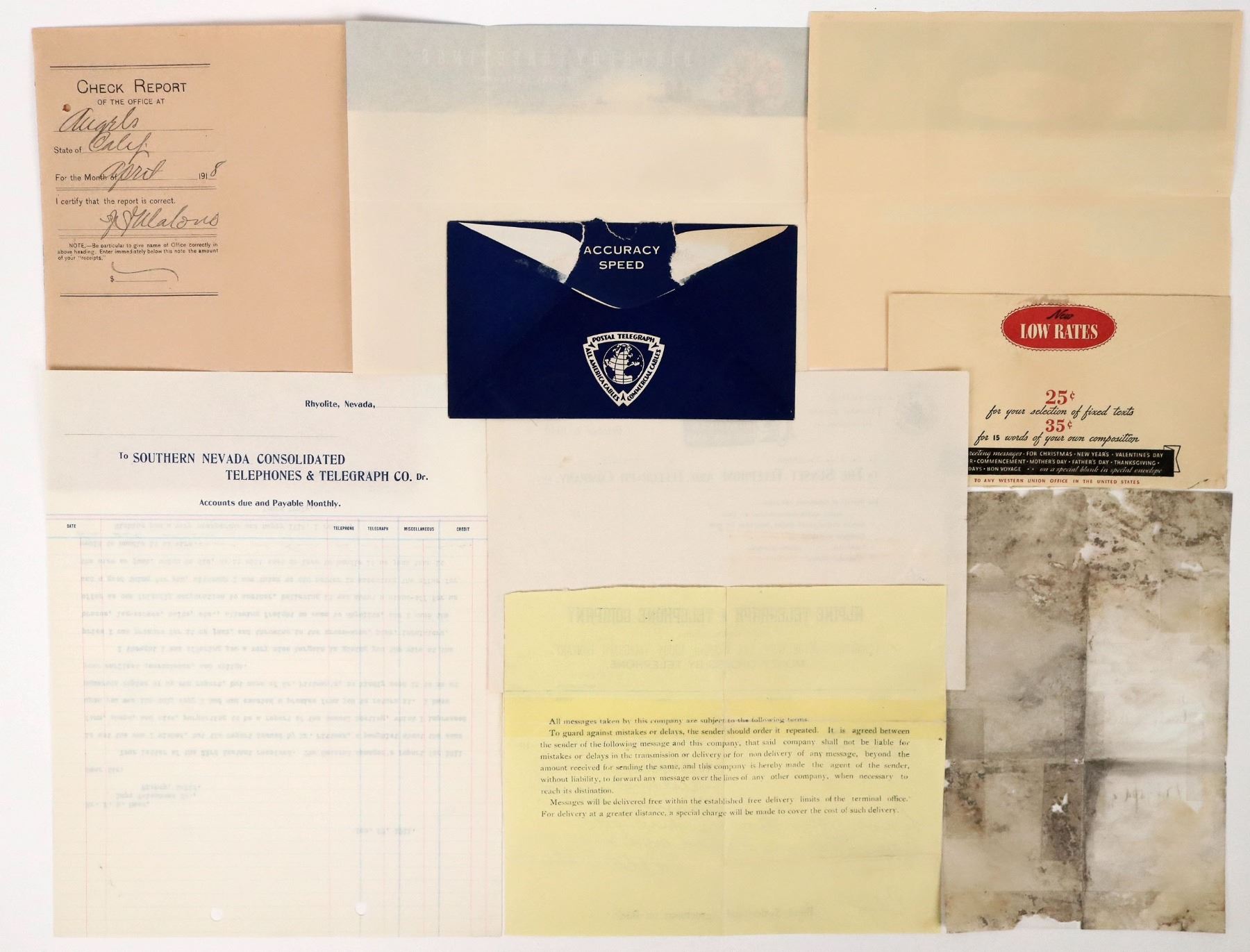 7 c. 1876-1918 California mostly Western Union telegraphs. Eureka, San Francisco-1 with Rockwell holiday illustration, Bishop, 1876 in rough condition.