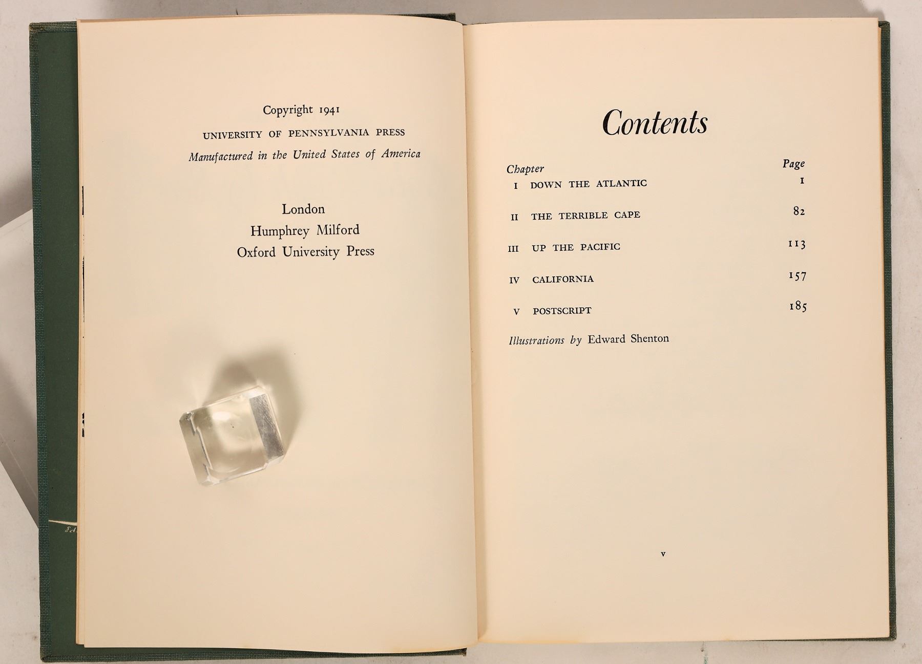 Two books about emigrants who reached the California Gold Rush by sea. Includes: "Gold Rush by Sea, from the Journal of Garrett W. Low," Kenneth Haney, editor. 1941, University of Pennsylvania Press, PA. Editor's Note: Haney writes of the ships on which his grandfather traveled from New York to California in 1850. 187 pp. 5.5" x 8". Sun bleached cover, otherwise very good; and "The Gold Rush, Voyage of the Ship Loo Choo Around the Horn in 1849," John B. Goodman III, editor, who wrote a 31 page introduction. Journal pulled from several letters, with the principal author, Morgan Bates. 1977, first, limited edition, 487 copies. 61 pp. 6" x 9". Fine. California