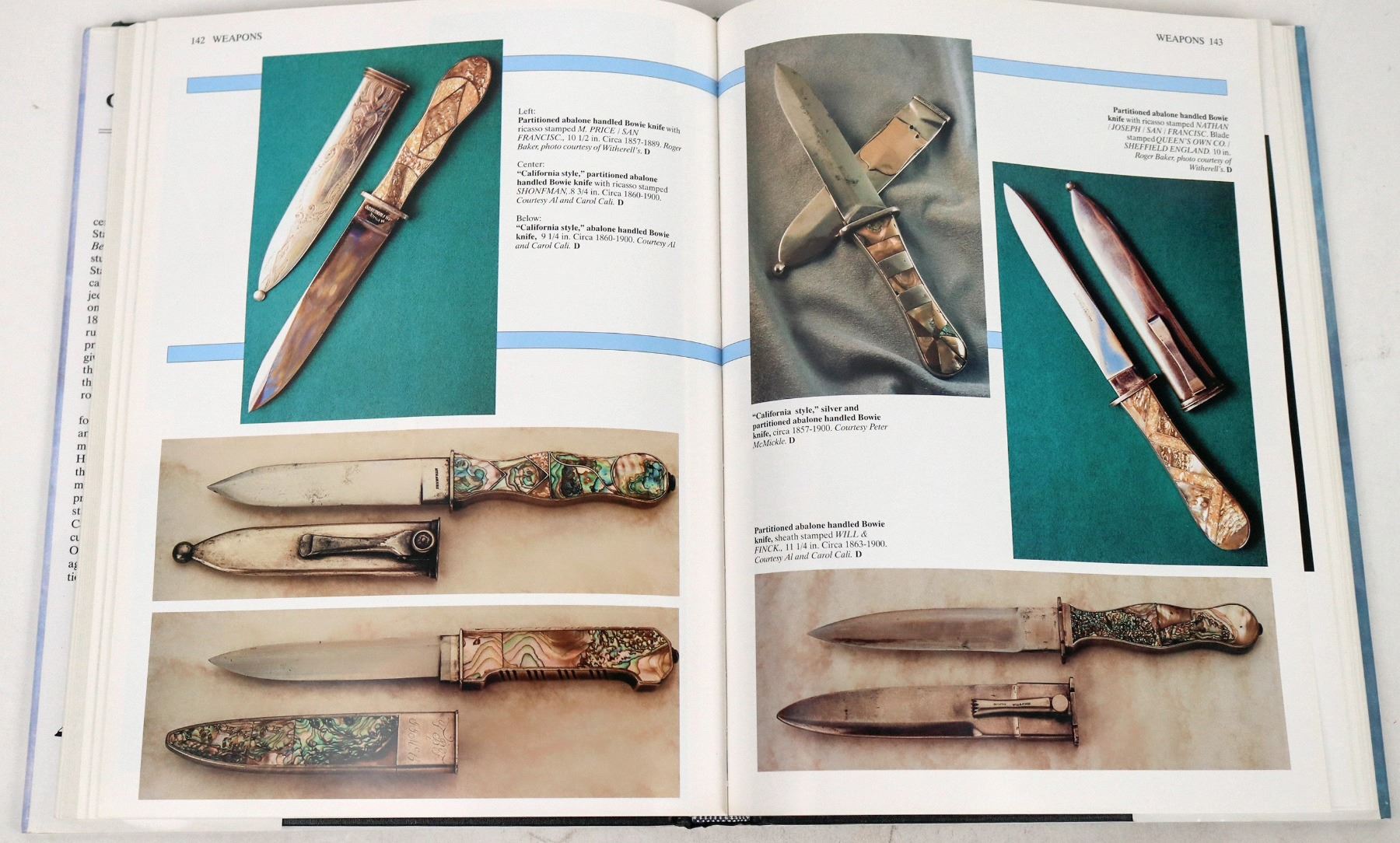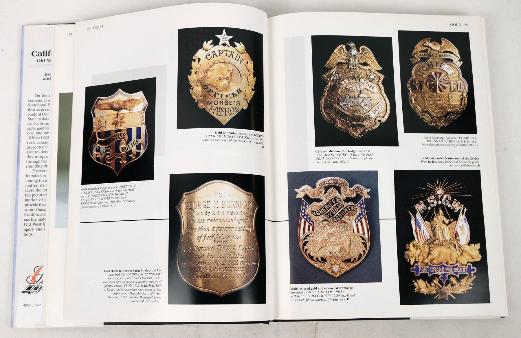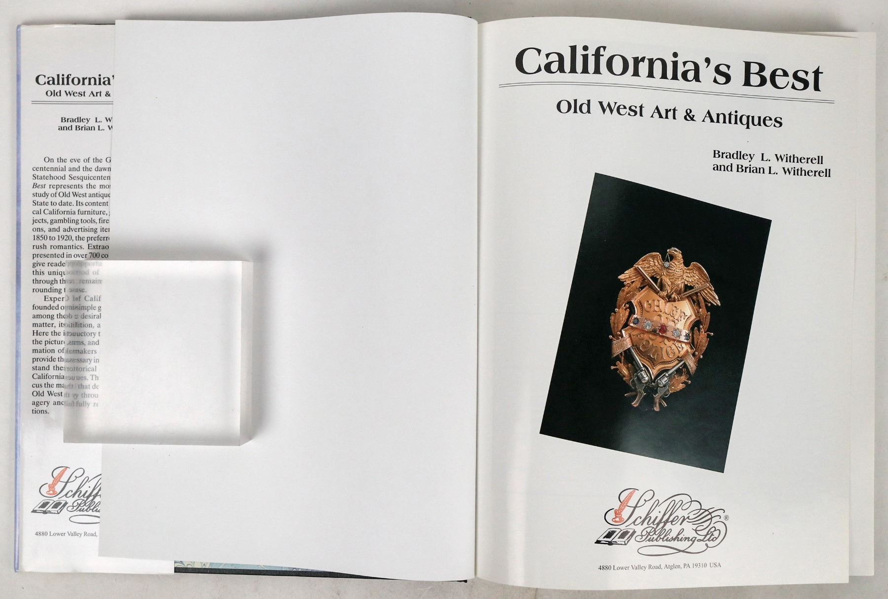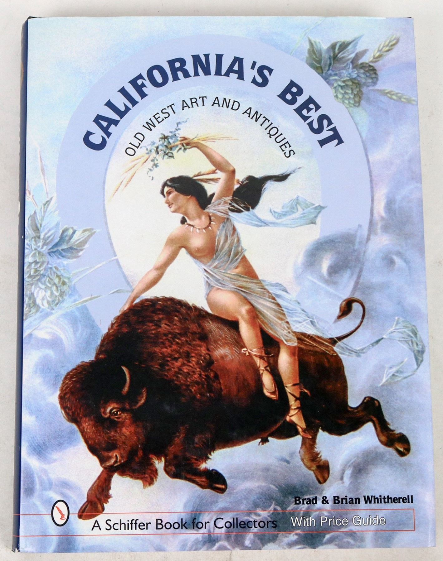This book: "California's Best: Art and Antiques" by Brad and Brian Whithrell covers a number of collectibles from the state of California. At pp. 252, 1999, black canvas hardcover book with DJ. This is a wrinkle at the top of the DJ. A comprehensive book of California collectibles: furniture, gold jewelry, firearms, knives, and beer advertising. The color photography is spectacular. There is a method to simplify pricing, however dated. A great reference book for the collector. Please see photo for details.