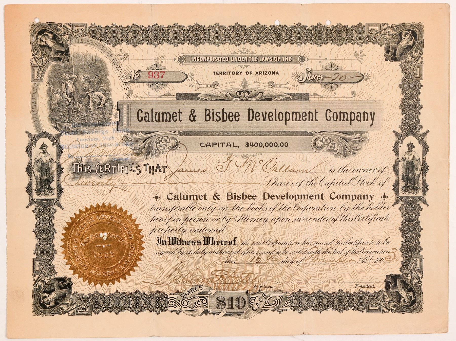 Calumet & Bisbee Development Co. Stock Certificate (104261)