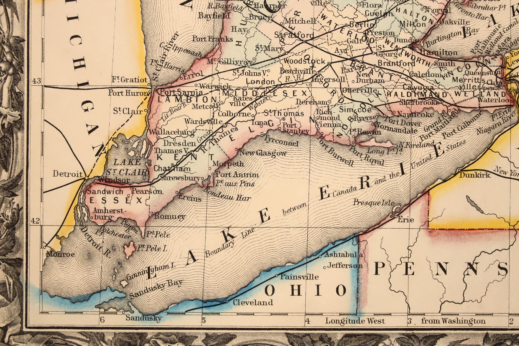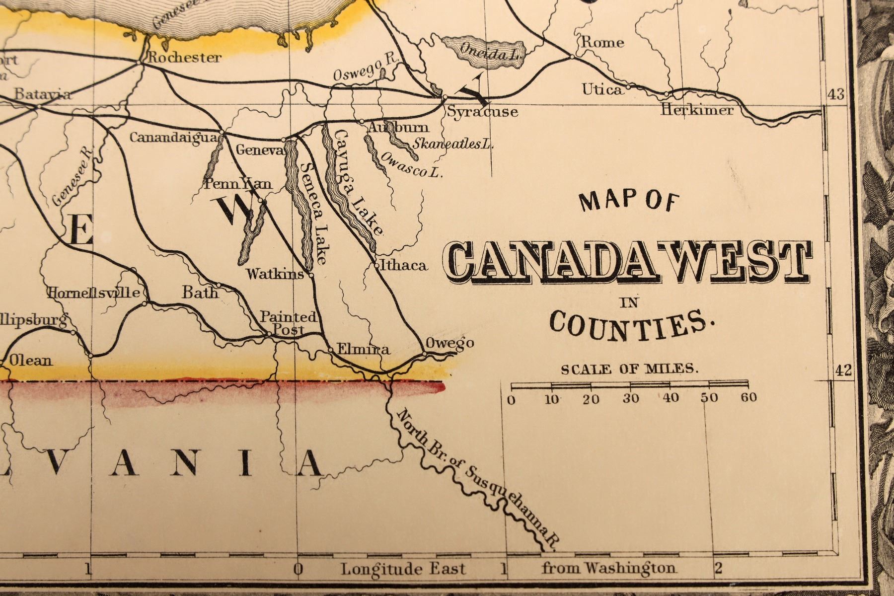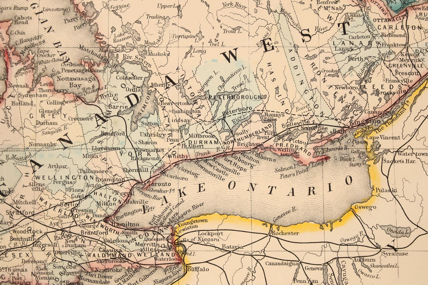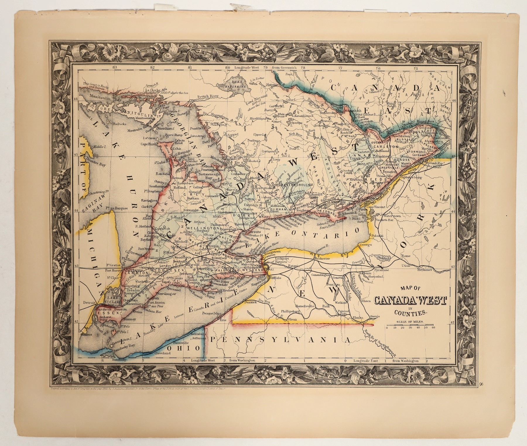 A 15.5 x 13 in. map of Canada west in counties in an 18 x 16 in. cardboard frame. See photo.