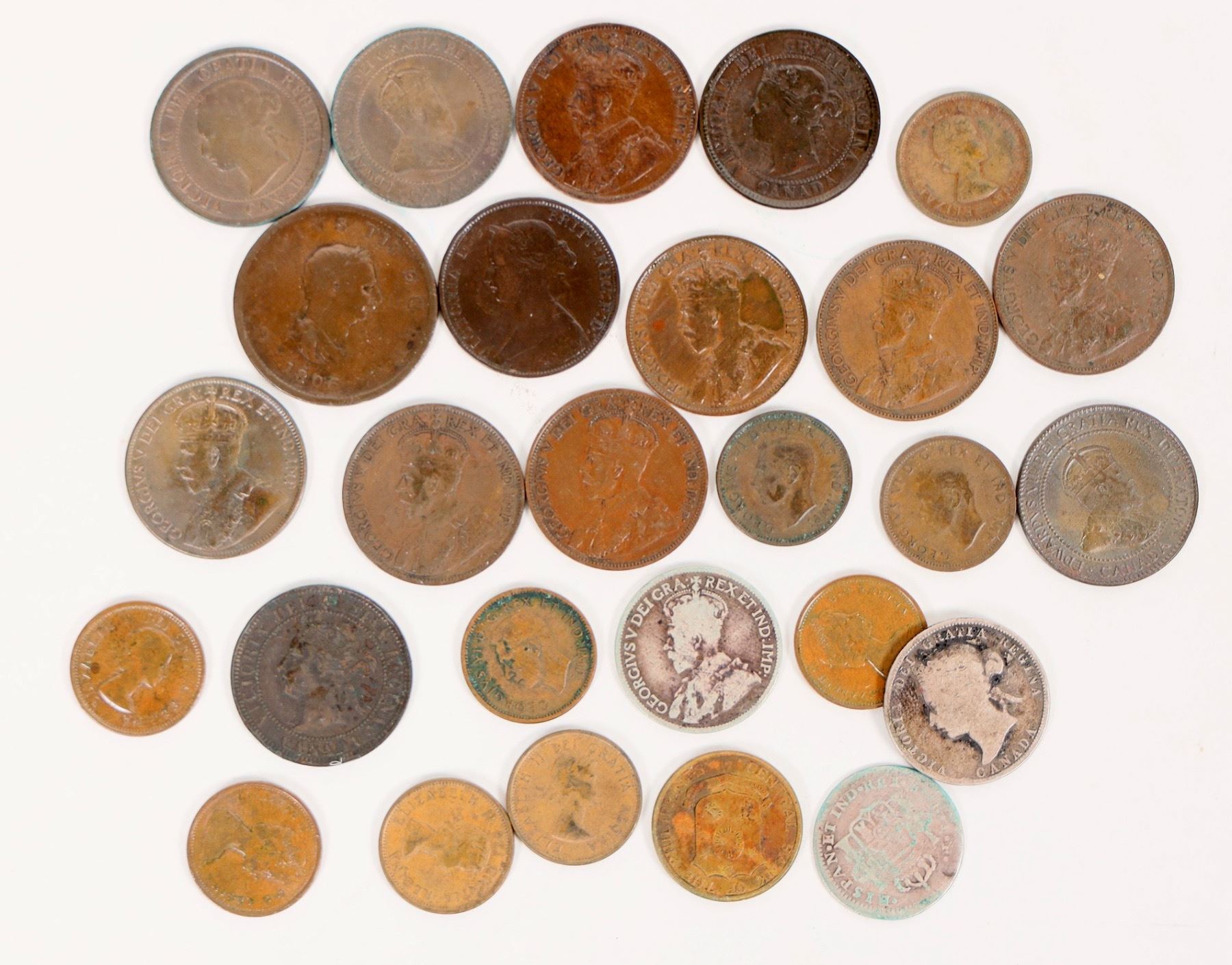 Nine small size cents; twelve large size cents; two twenty five cents: 1874 & 1913; 1981 Prince Charles/Lady Diana.