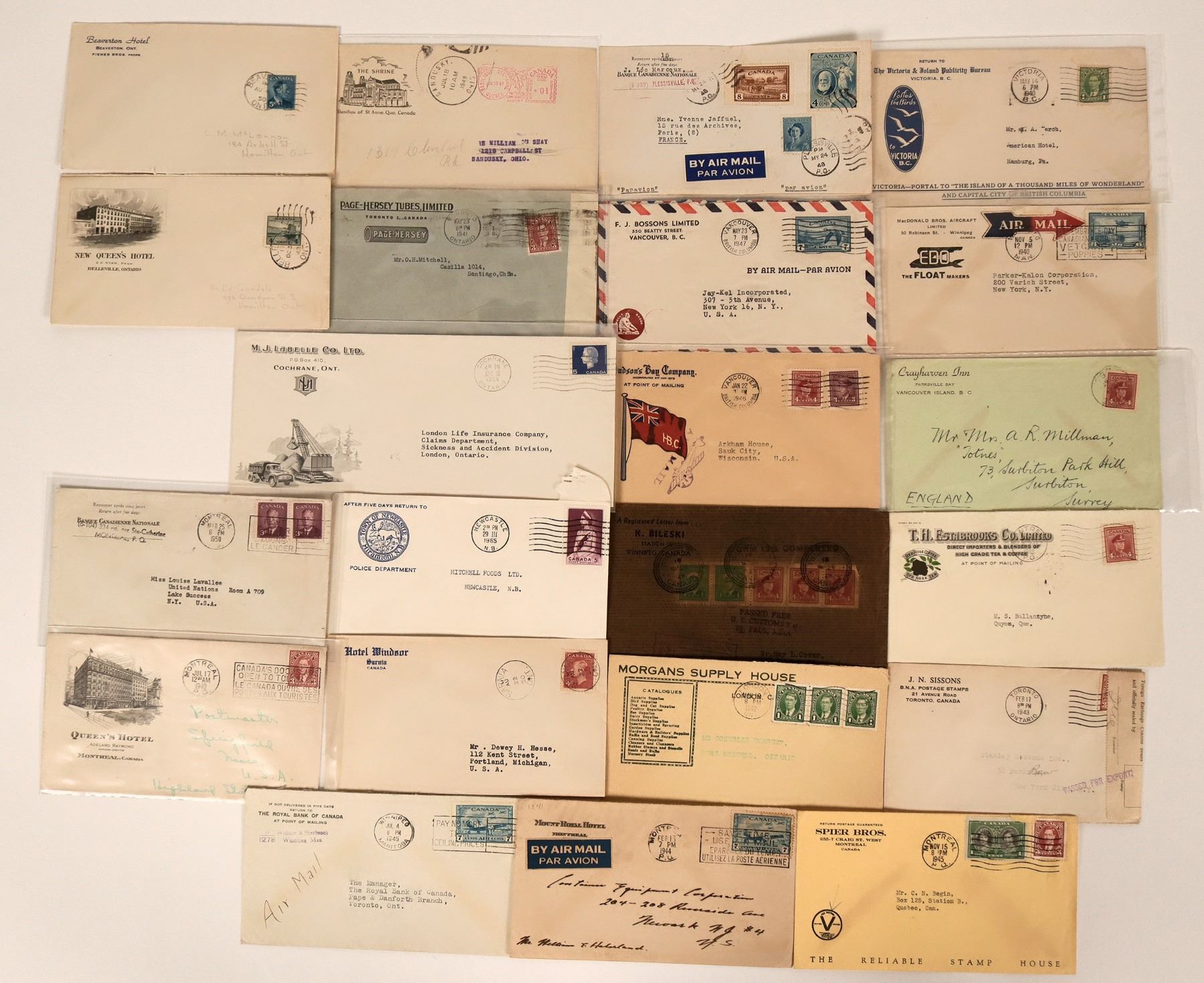 This is a collection of about 20 Canadian corner ad covers from 1940-on. You will find the Hudson Bay Co., MacDonald Bros. Aircraft , The Royal Bank of Canada and more. Please see the photos.