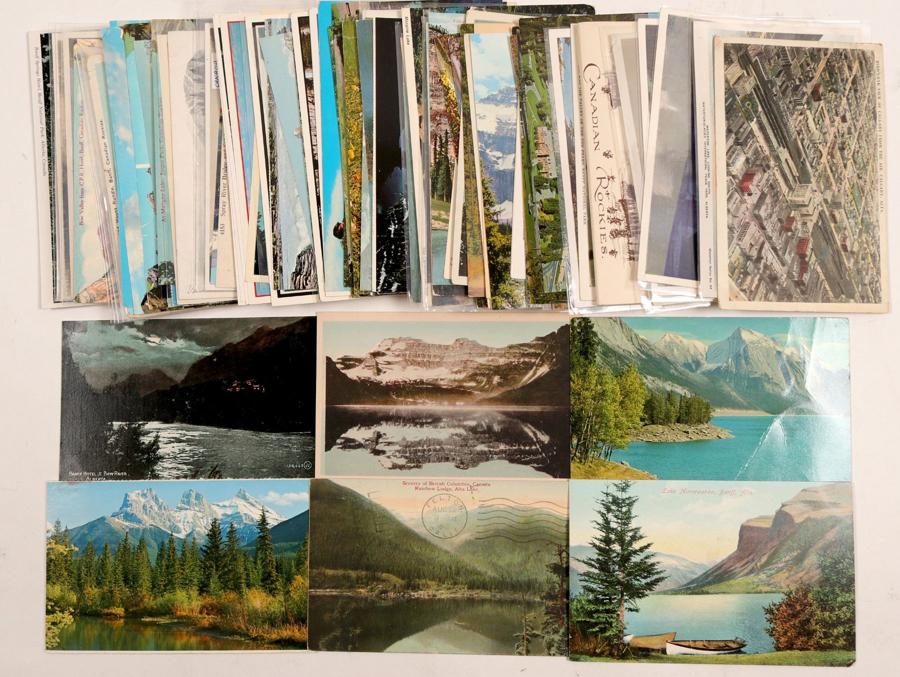 Approx. 60 postcards, chromolitho's of Mt. Rundle, Banff National Park, Alberta Canada; Lake Louise from the Gardens of Chateau Lake Louise At Maligne Lake, Jasper Park, Canadian Rockies & many more.