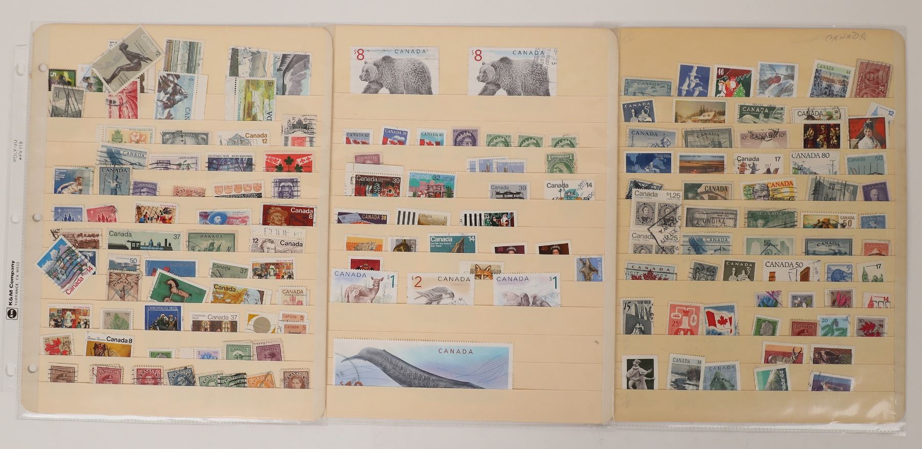 Over 120 Canadian stamps. About a dozen vintage issues, large variety of sizes, colors, denominations and artwork. Excellent beginners collection! Canada