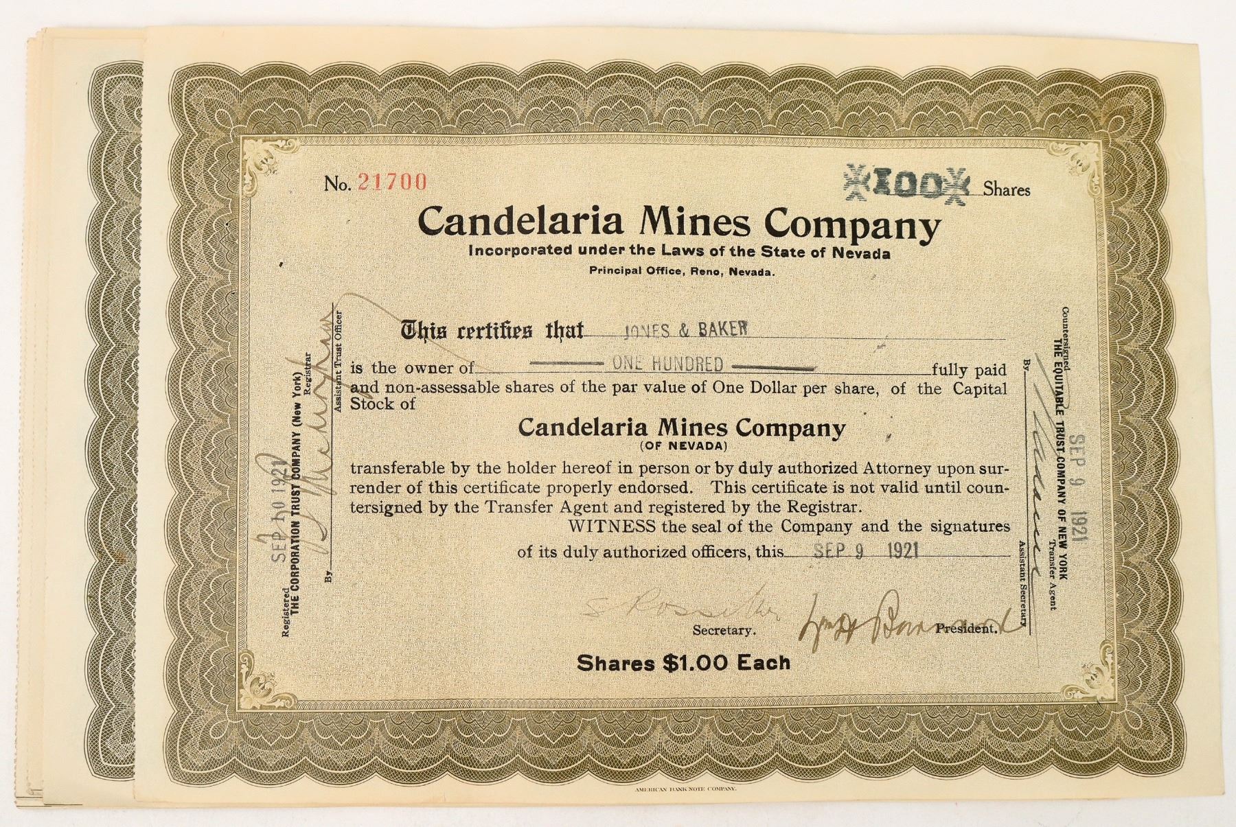 6 issued 1920-23 Candelaria Mines stocks.