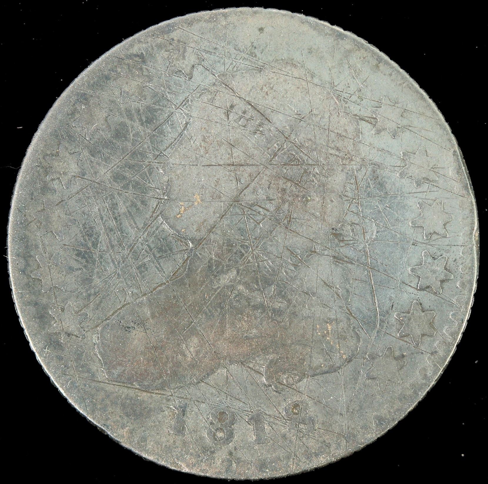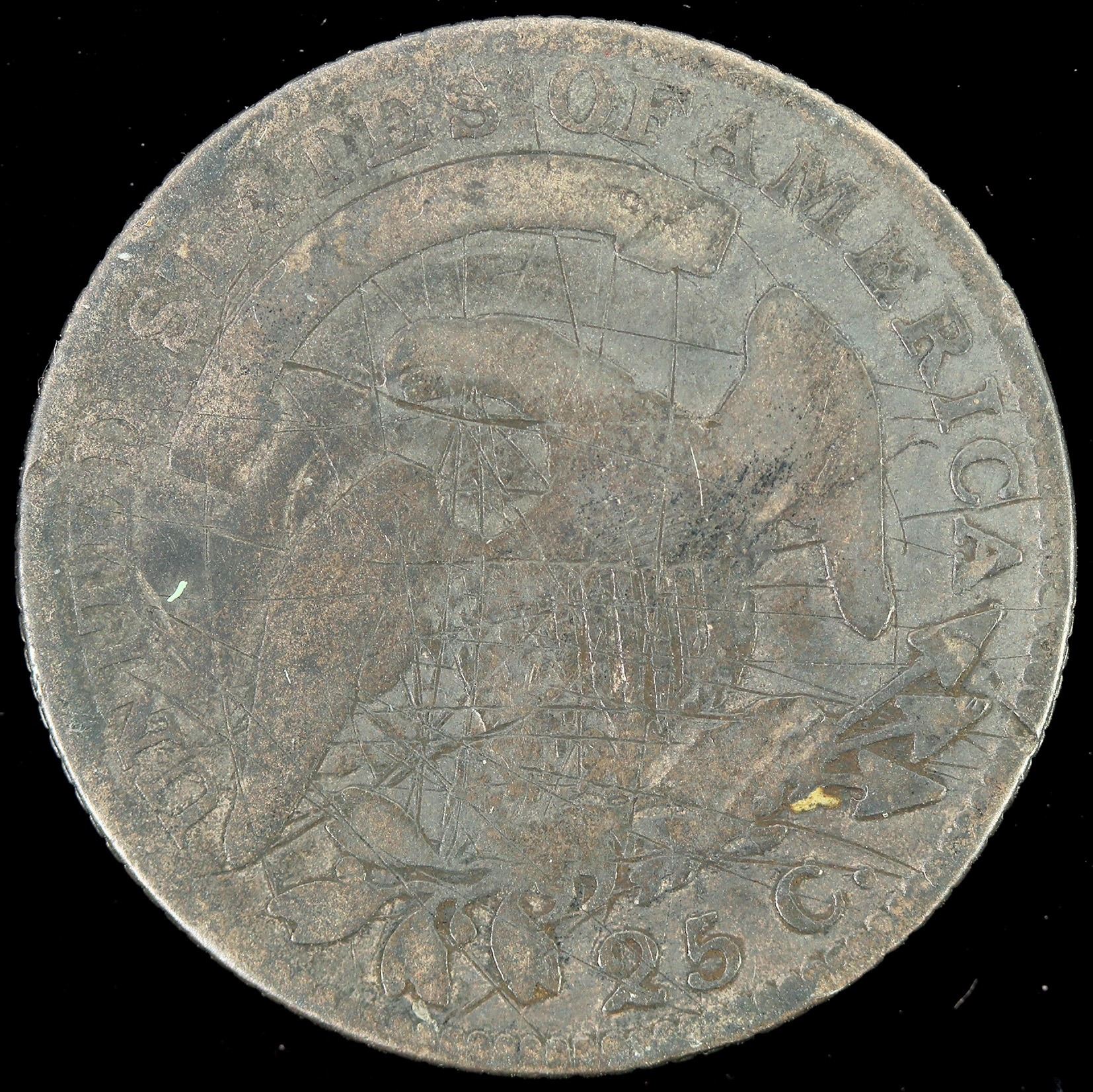 Capped Bust 1818 twenty five cent piece. AG-G condition with scratches both sides.