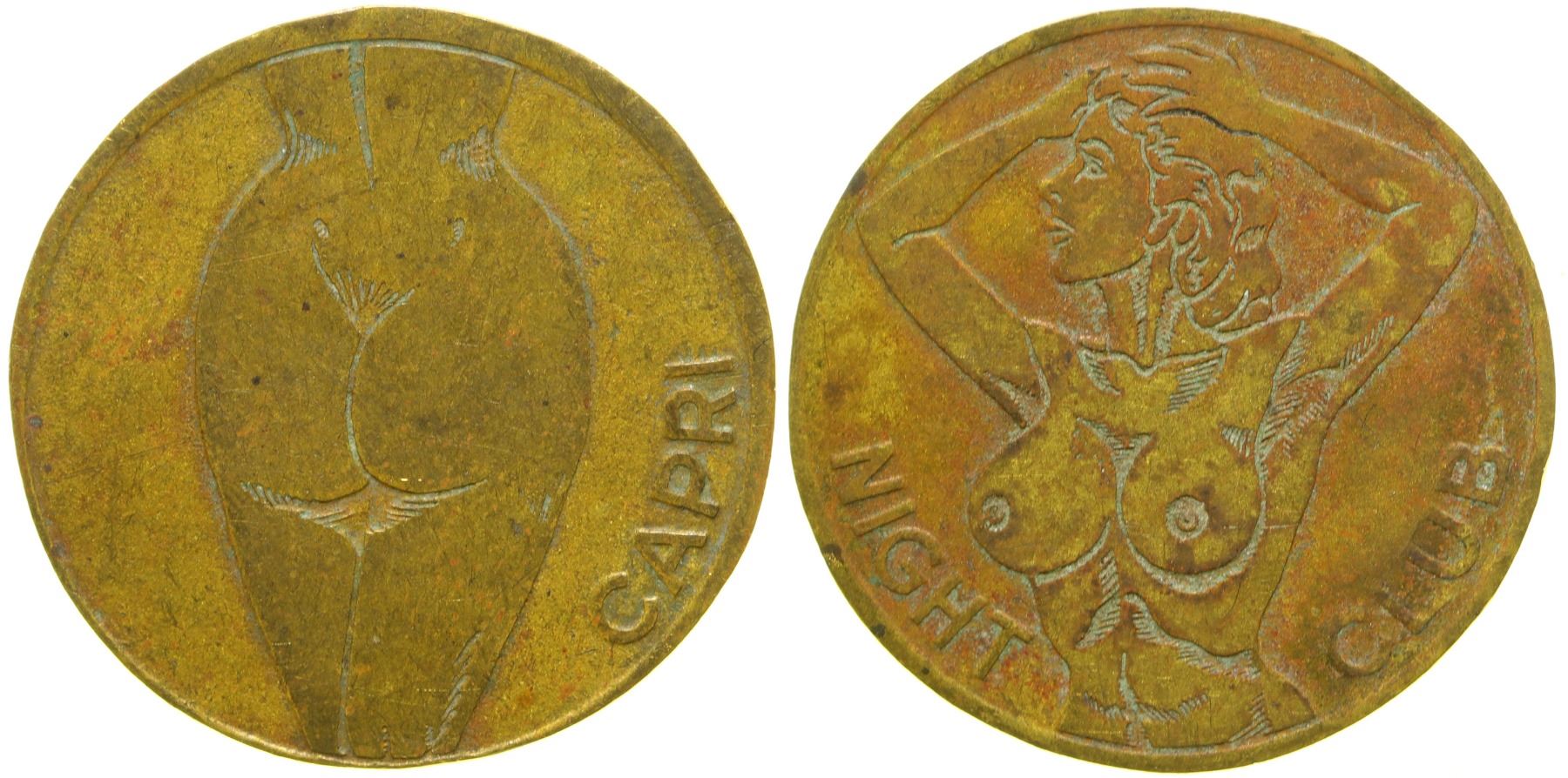 Obv.: Capri / (woman's figure); Rev.: Night Club / (topless woman). Br. rd., 25 mm.
