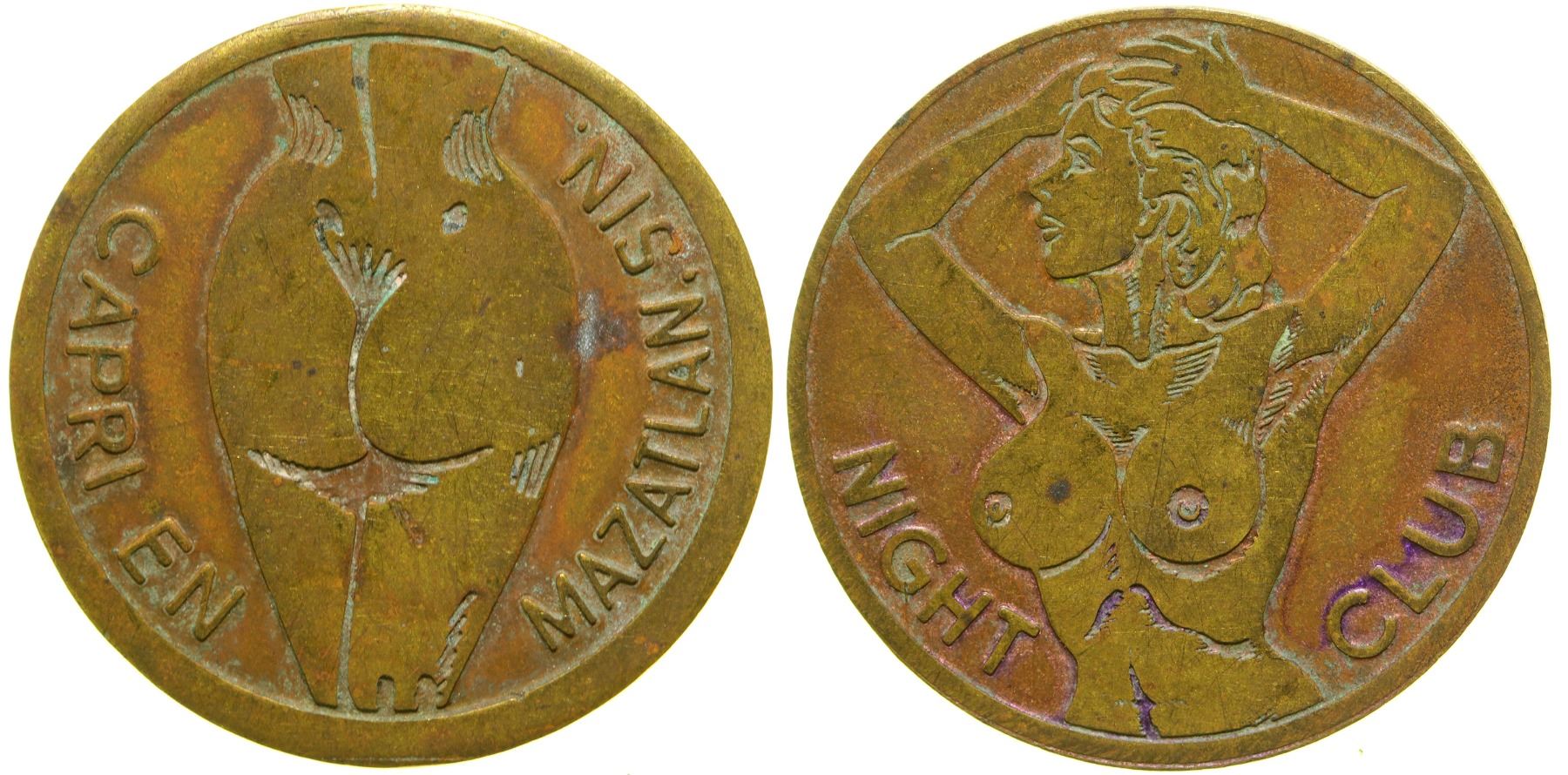 Obv.: Capri En Mazatlan Sin./ (woman's bottom); Rev.: Night Club / (topless woman). Br. rd. 25 mm.