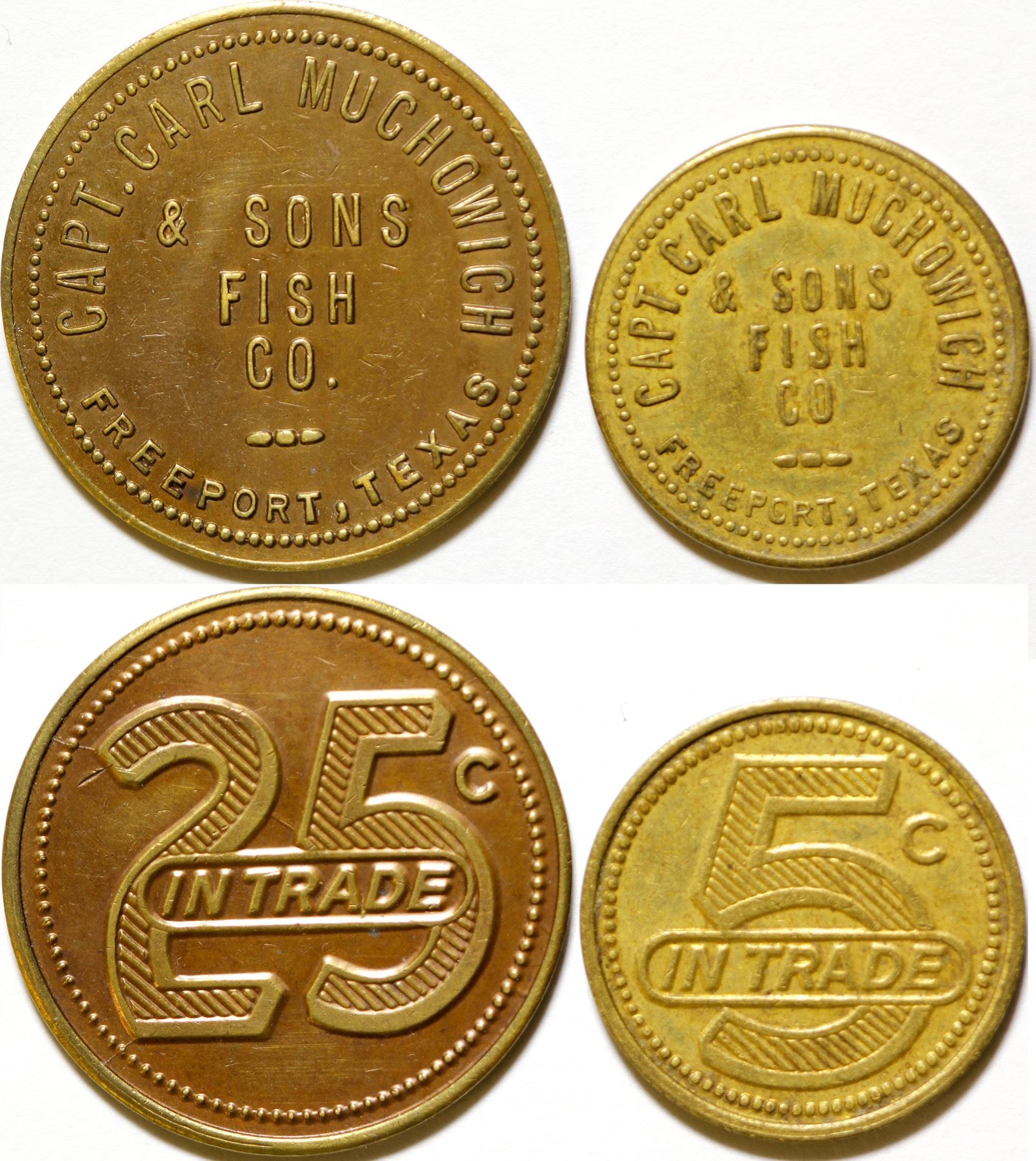 Capt. Carl Muchowich & Sons Fish Co. Two tokens, GF 5c & GF 25c State: Texas City: Freeport Date: HWAC# 82653