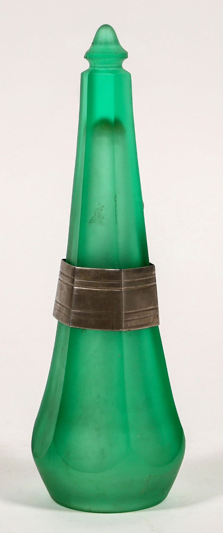 8.25" frosted green car vase with bracket. A few small bruises. No apparent chips or cracks. PLEASE SEE DAY 3 FOR MORE CAR VASE LOTS (STARTS WITH LOT 3000)