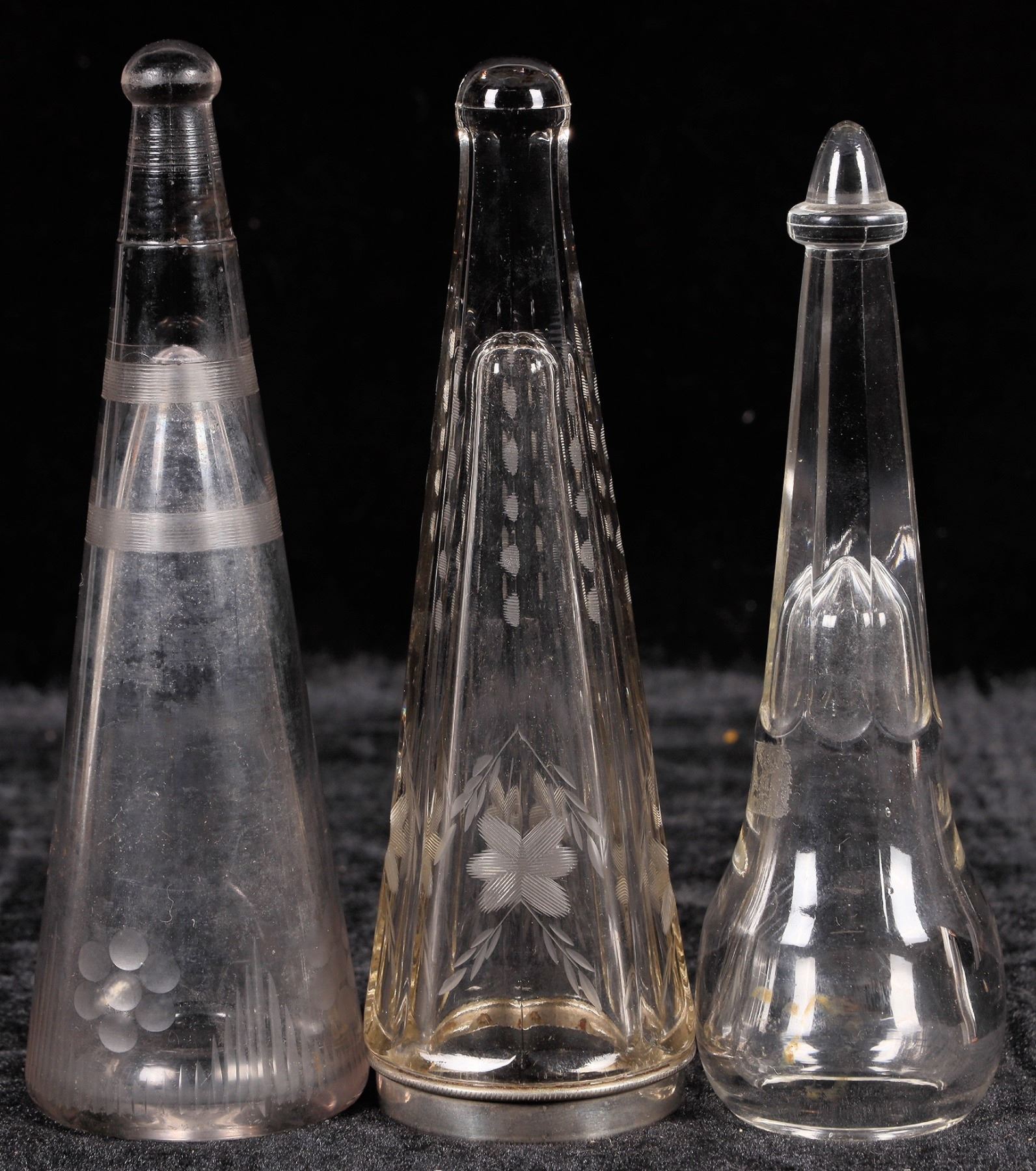 3 selenium car vases. They do not turn purple. 8" with 7 sphere pattern and inward lip, 7.75" , white metal inward lip with wheat pattern, 7.25" inward lip with rounded top-small lip bruise. No apparent chips or cracks.