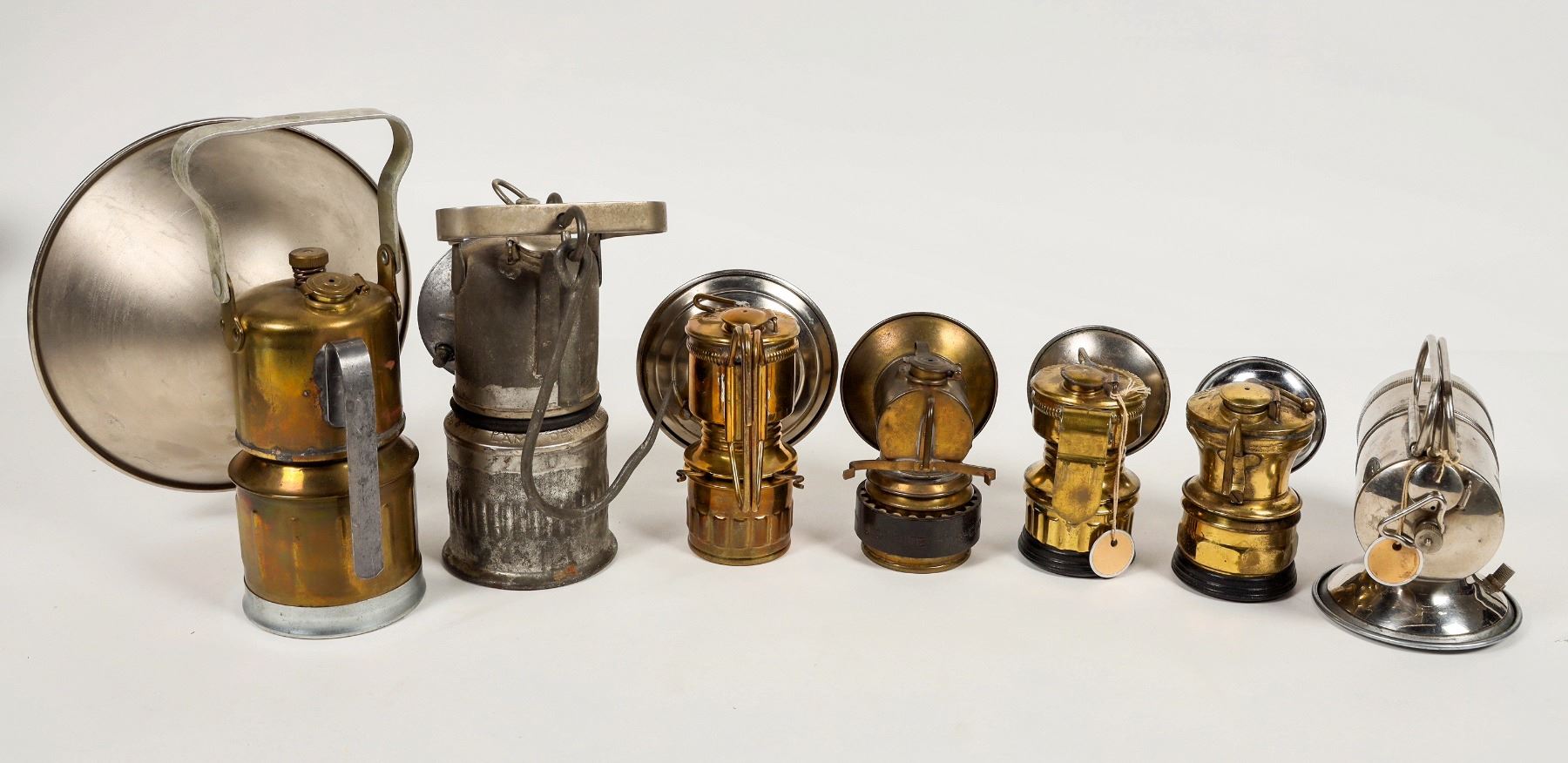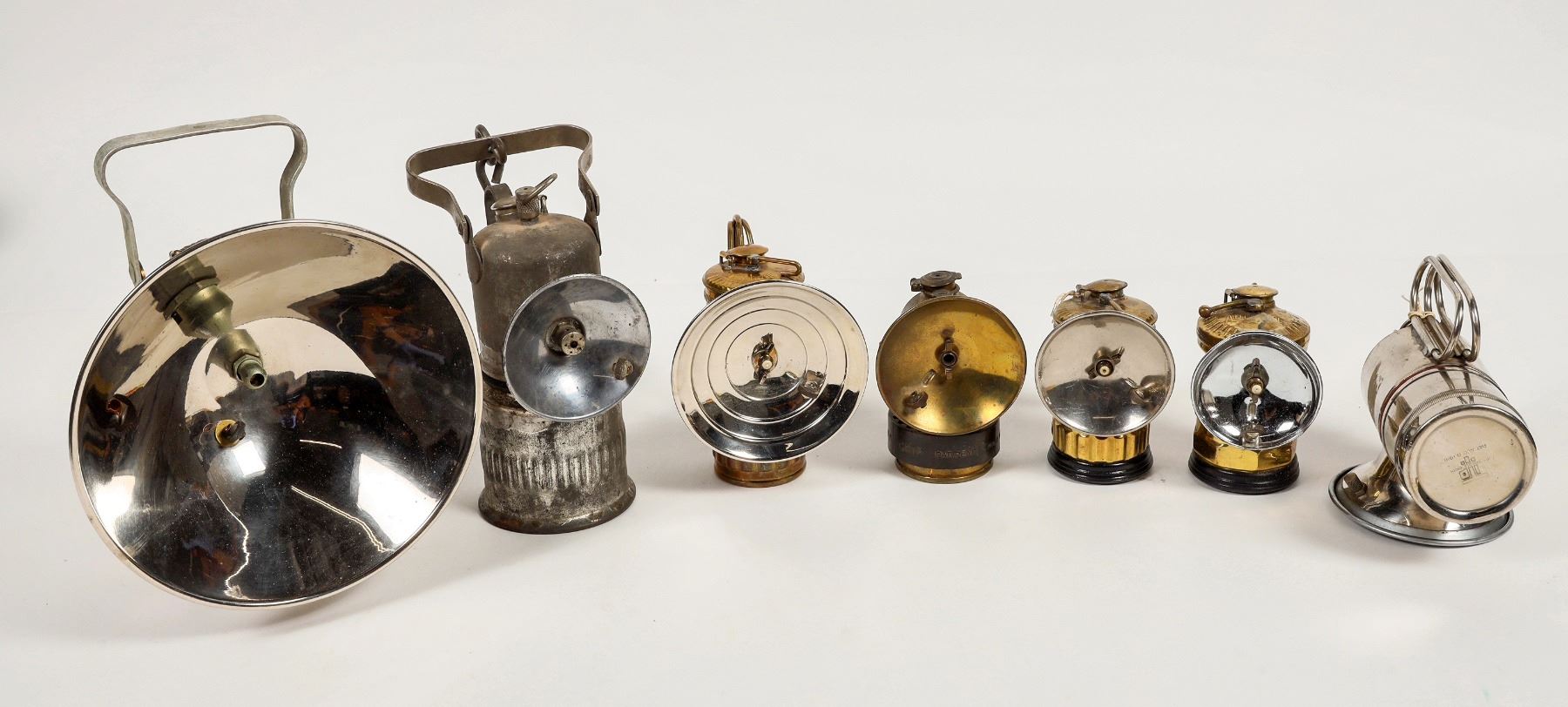 Carbide lamps, 7. Appear to be in good condition, various sizes from 4-8.5" heights. See photo.