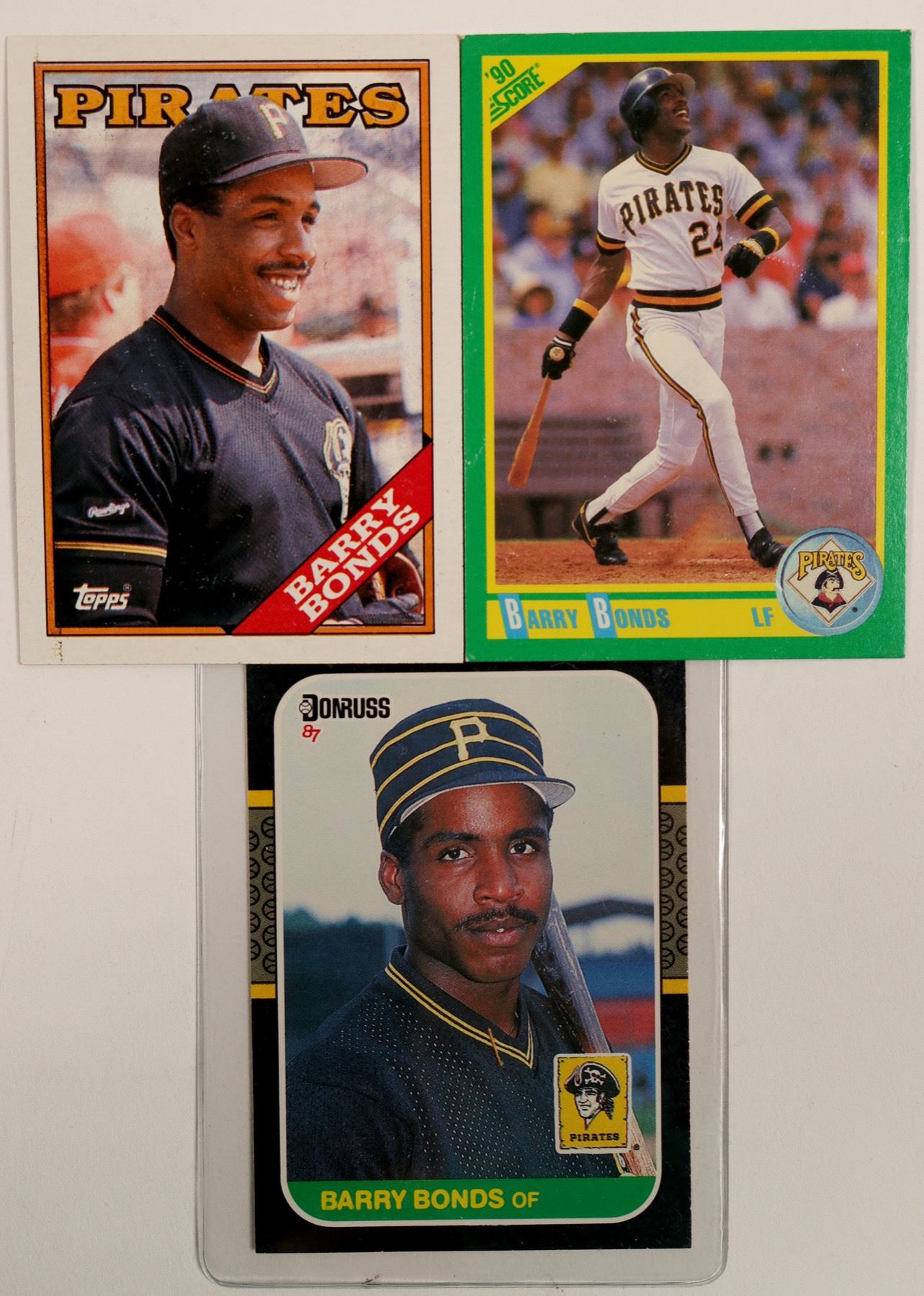 These items were found in the Barry Bonds suitcase. One 1987 Barry Bonds Donruss card #361. One 1988 TOPPS #450 card. One 1990 Score #4 card. All items were owned by Barry Bonds. 3 cards total. City: State: Date: