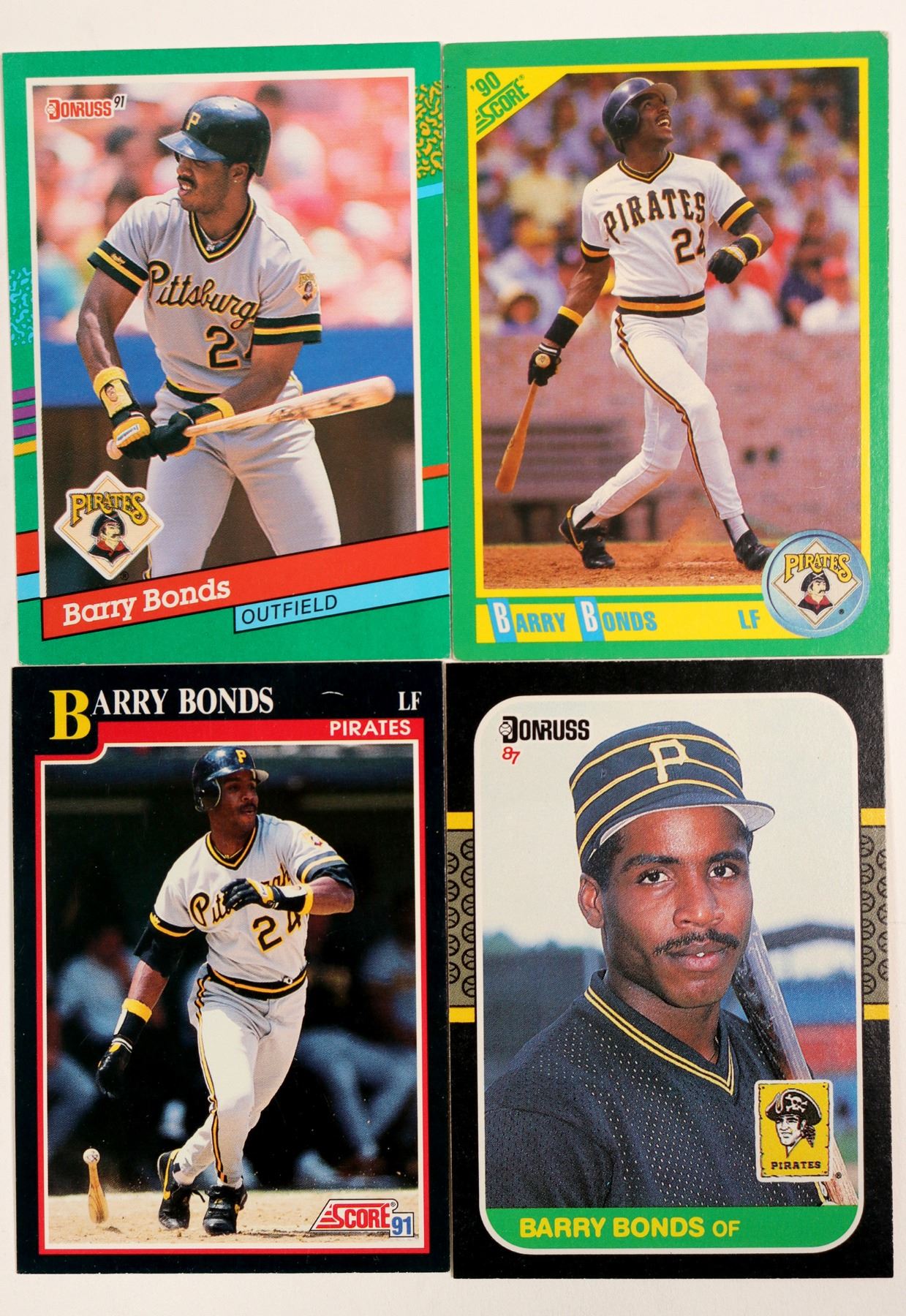 These items were found in the Barry Bonds suitcase. One 1991 Barry Bonds Score card #330. One 1991 Donruss #495 card. One 1990 Score #4 card. One 1987 Donruss card #391. All items were owned by Barry Bonds. 4 cards total.