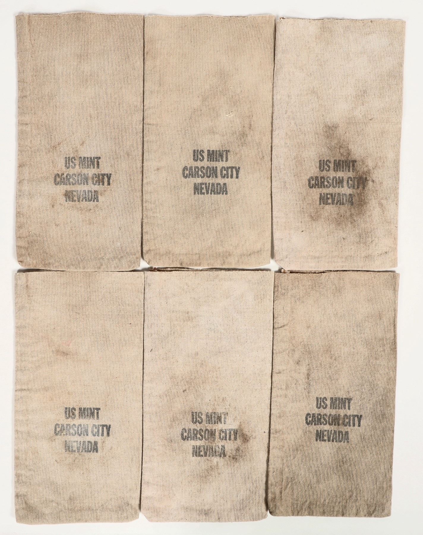 This lot has six coin bags marked "US Mint/ Carson City/ Nevada" at roughly 5 in. X 11 in. The print is very crisp and legible. 1960's. In very good condition. Please see photos for details.