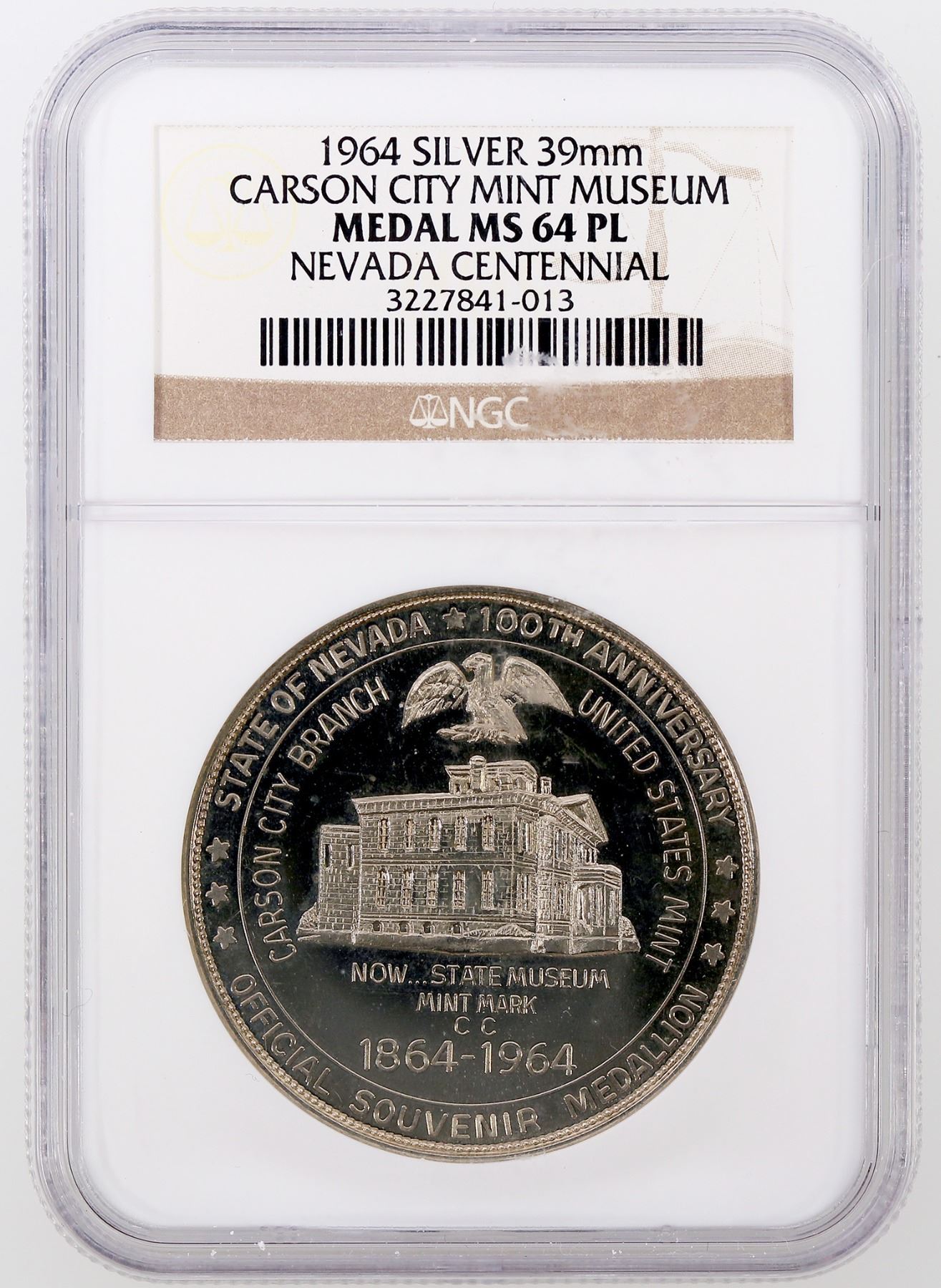 NGC certified MS 64 PL. Official souvenir medallion for the State of Nevada's 100th Anniversary.