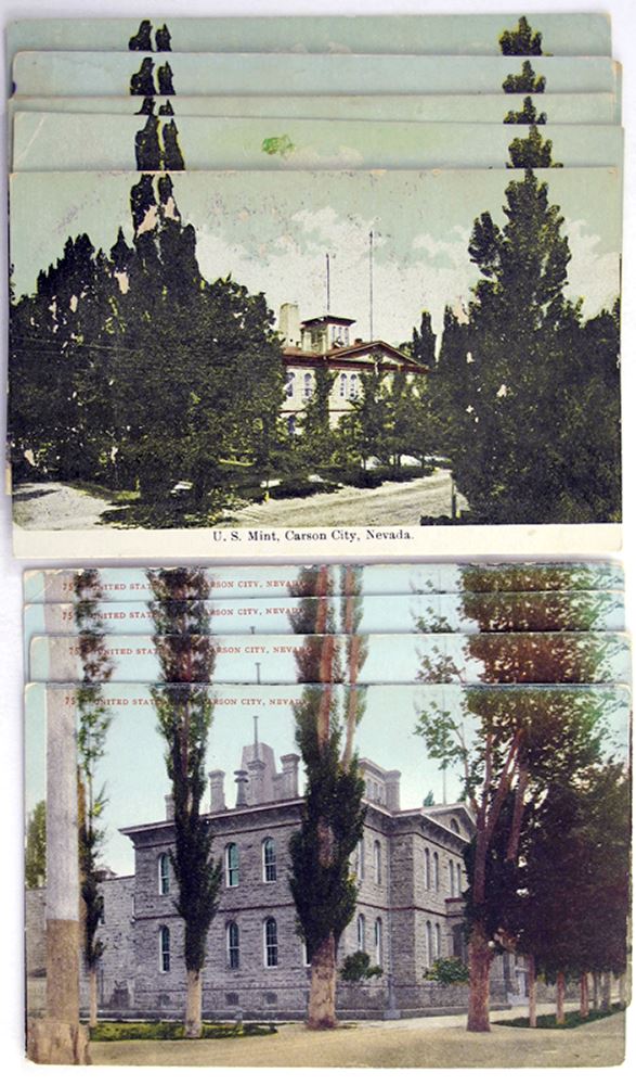 A collection of post cards, six used and seven un-used. All are pictures or photographs of the U.S. Mint. Some are chromolitho cards and some are chromolithograph cards.