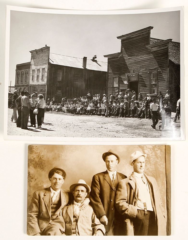 1) Four men in Nevada. Photographer identified on the back as Grahame Hardy of Carson City. 2) Two Bodie photographs (5 x 7") taken the day that the Bodie State Historic Park was dedicated by the California State Park Commission. Includes a duplicate. Date: Location: Bodie, California HWAC # 45579