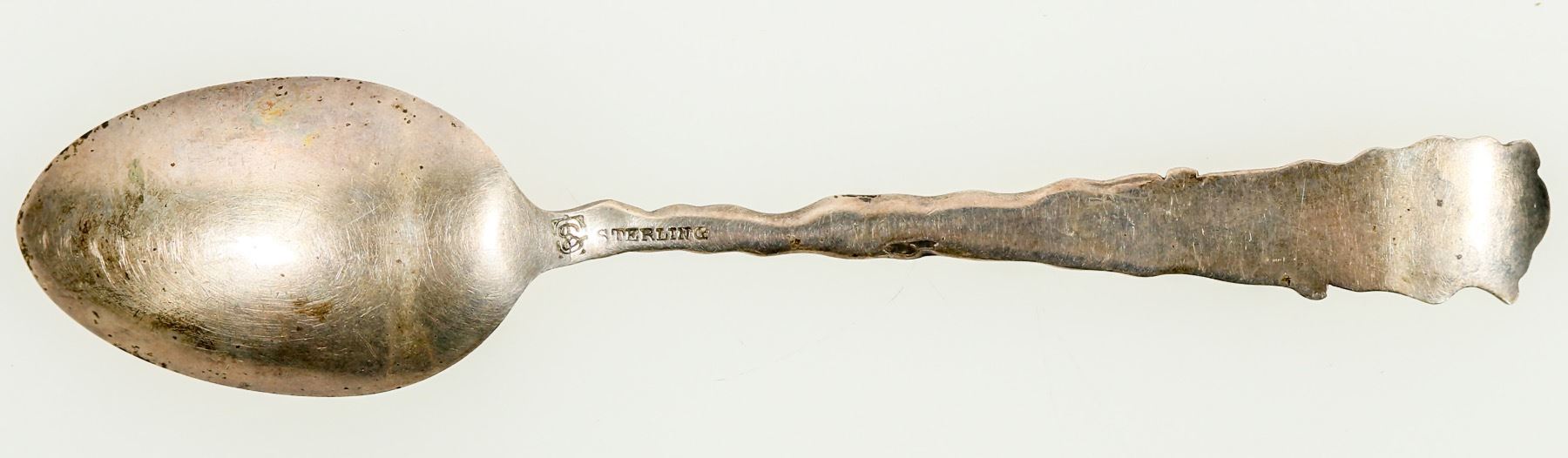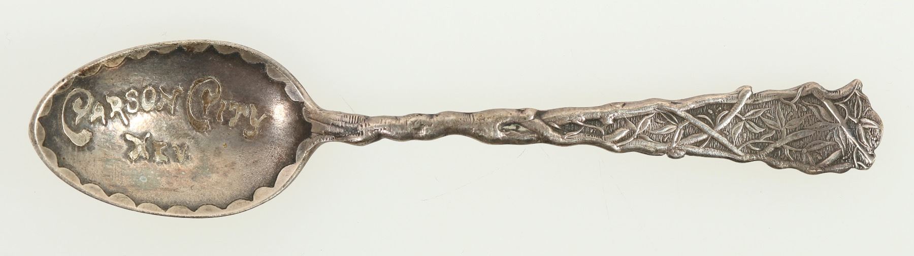 c. 1890's Sterling silver souvenir spoon. The bowl is consistent with the era as the lettering is crude. Perhaps somebody purchased this when they visited Virginia City and the Carson City Mint in the 1890's? 4".