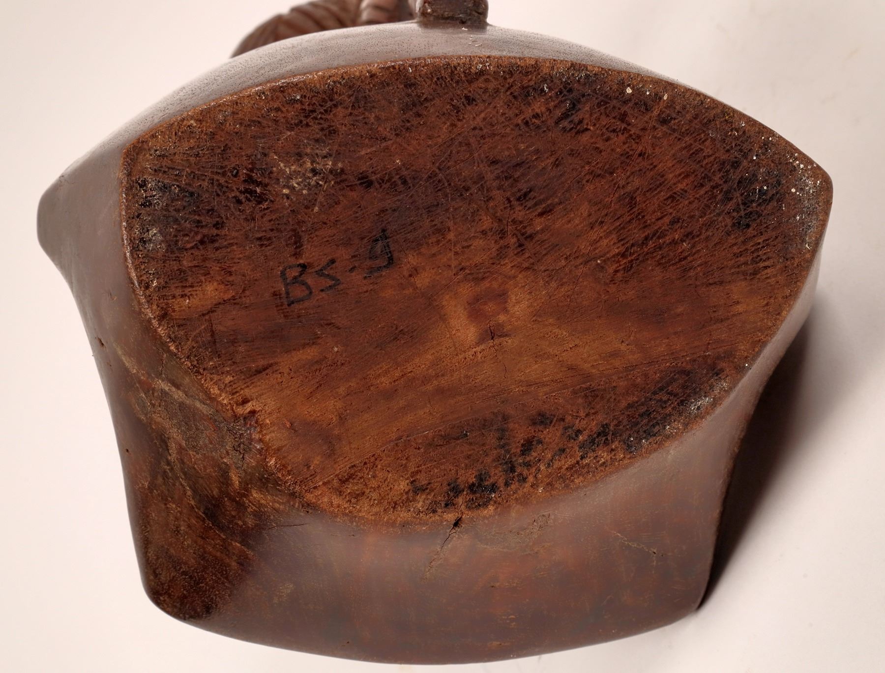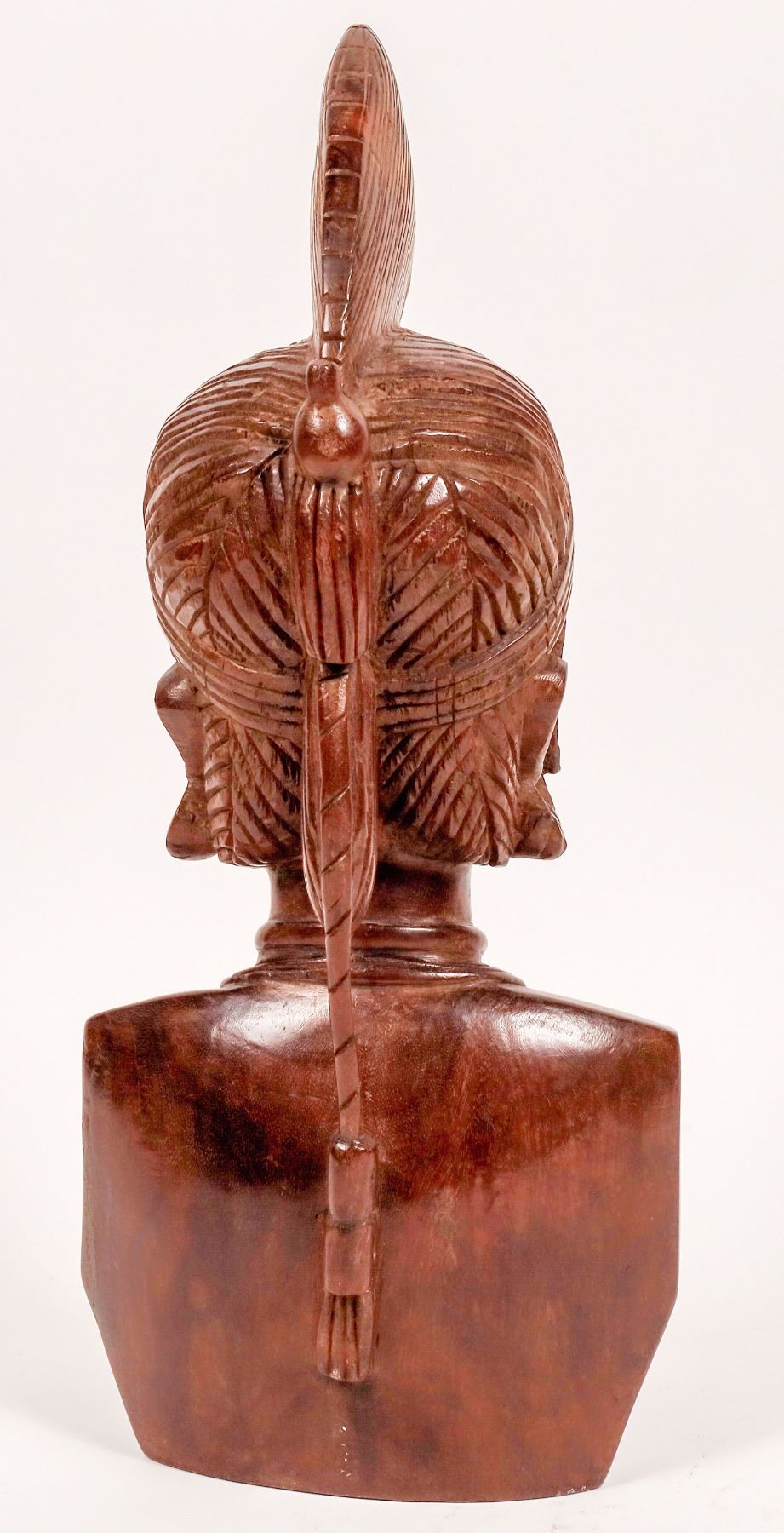 Large dense brown wood Asian lady with her hair in a a blade style with a hanging tail in back. No artist marked. 19.5x8.25x9". 13.5 pounds. Asia