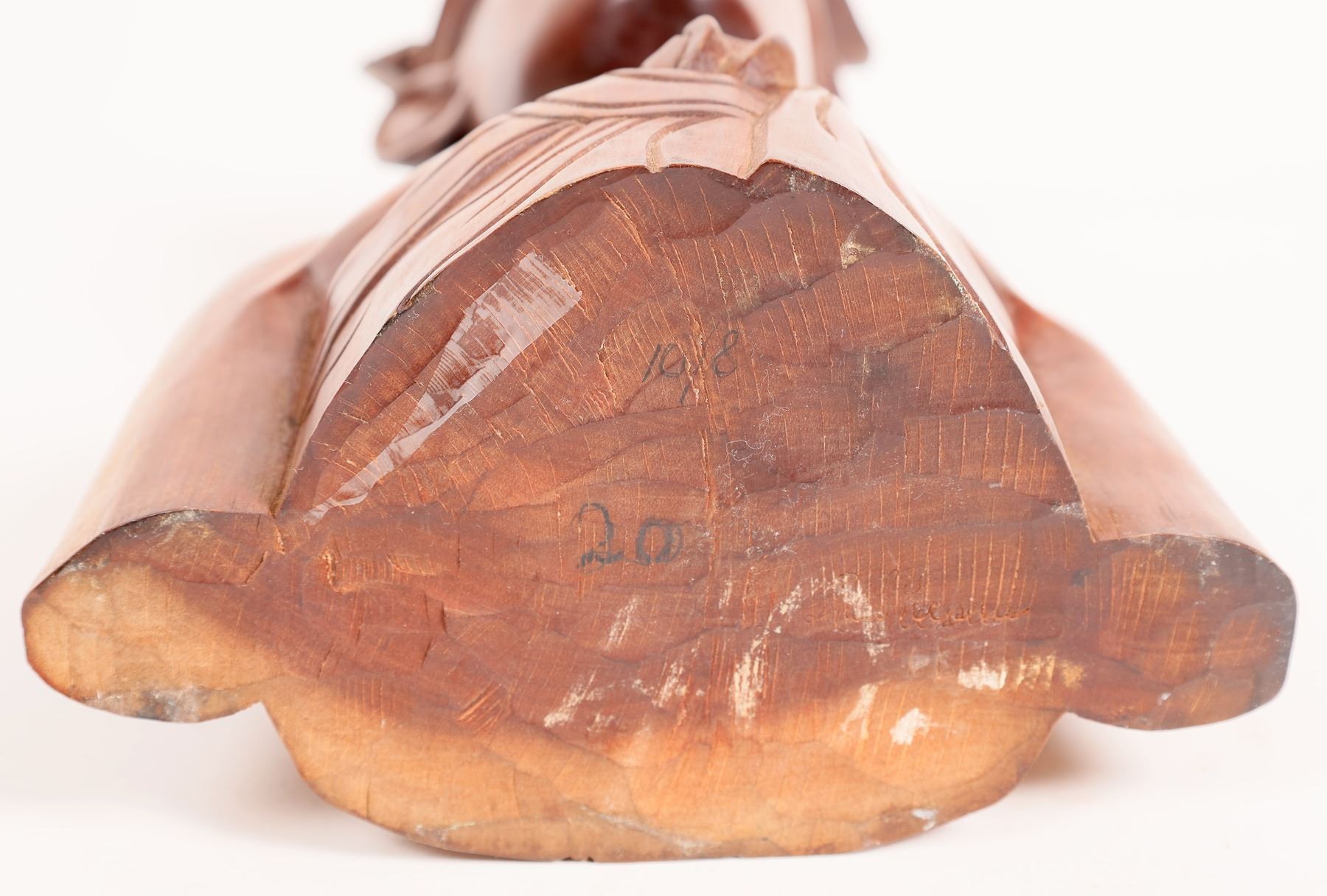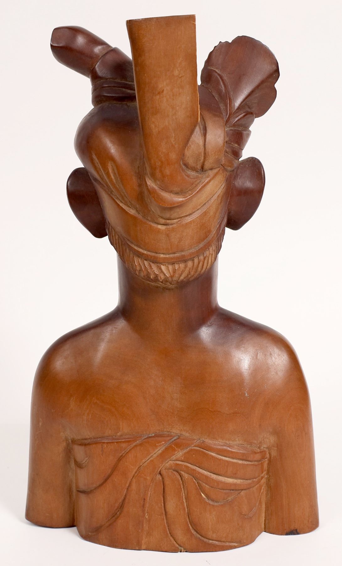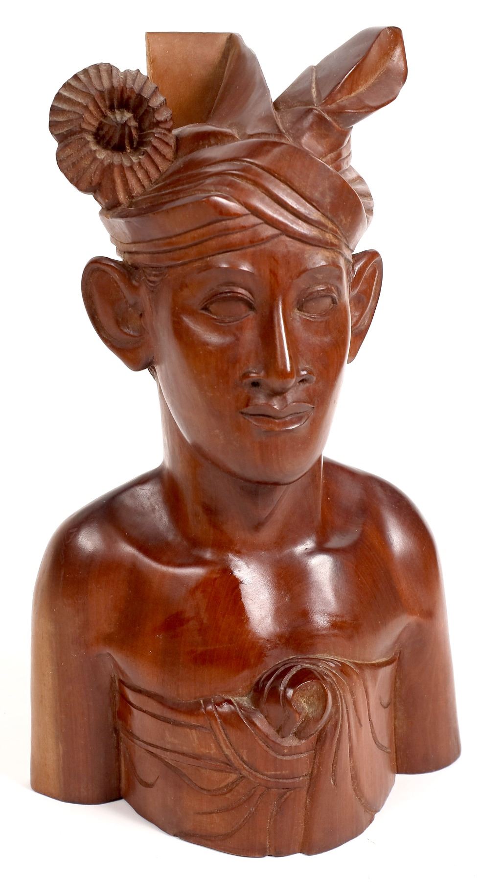 Carved high density brown wood Asian lady with a flower in her hair. Unsigned. 12.5x8.5x4". Asia