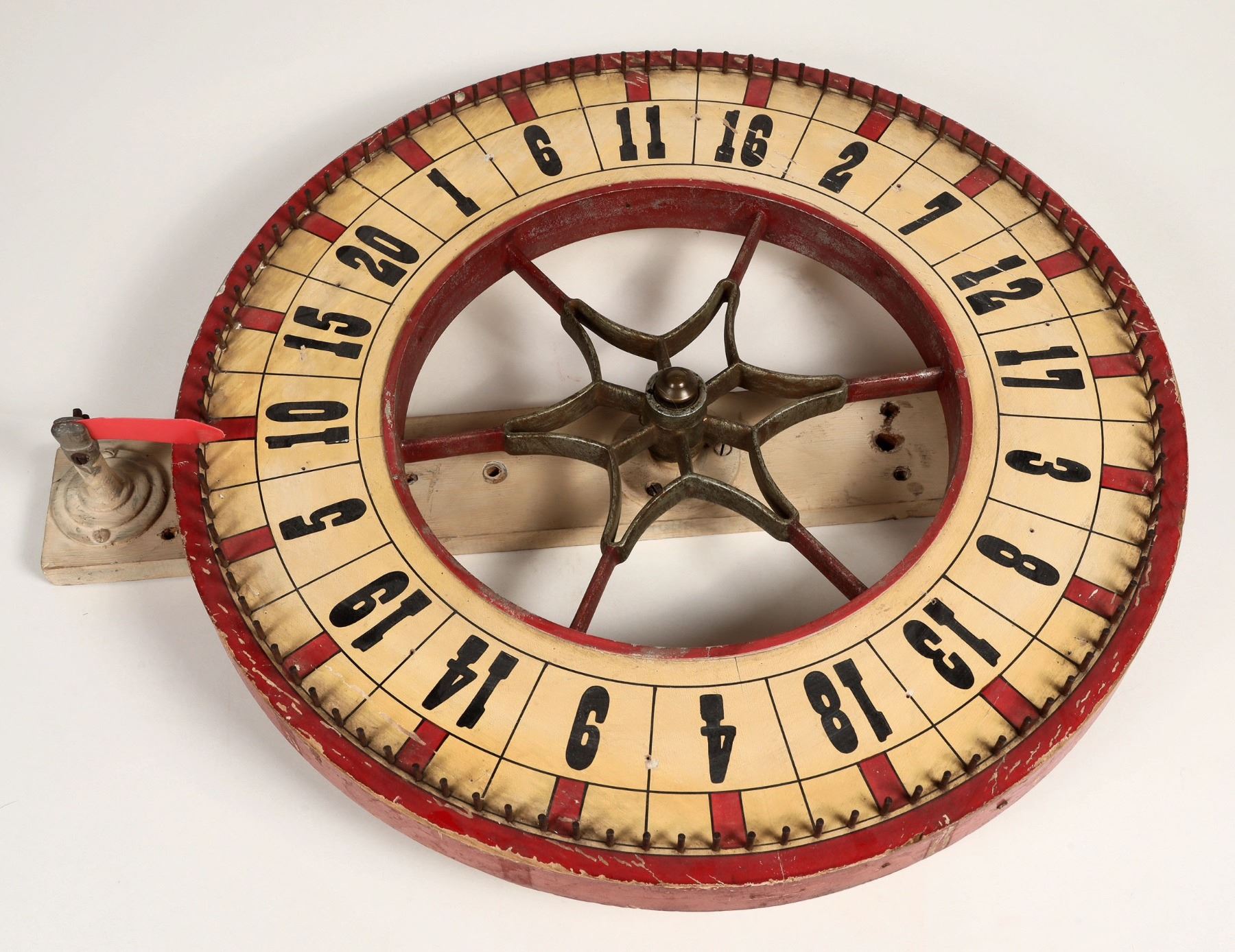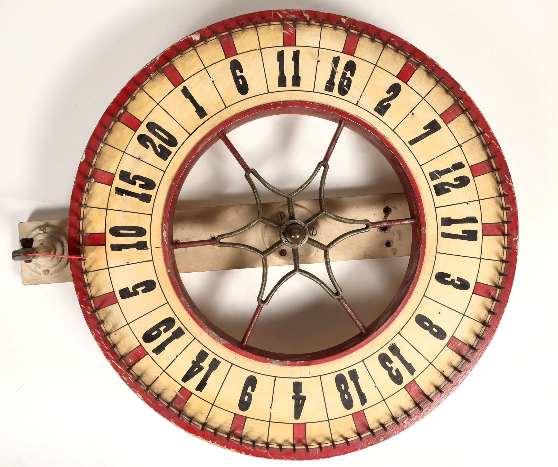 This is a commercially made casino spin wheel. The paint is original as is the axle and bearings. With a Nevada provenance. At 20 in. in diameter. Very good condition. Ready for your next party. Please see photo for details.