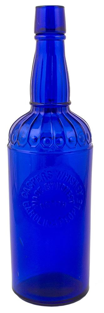 Casper's Whiskey "Made by Honest North Carolina People". Fluted shoulder cobalt blue whiskey. Four piece mold. Clean, bright, vibrant. Appears choice. Please inspect. City: State: North Carolina Inventory Number: 39505