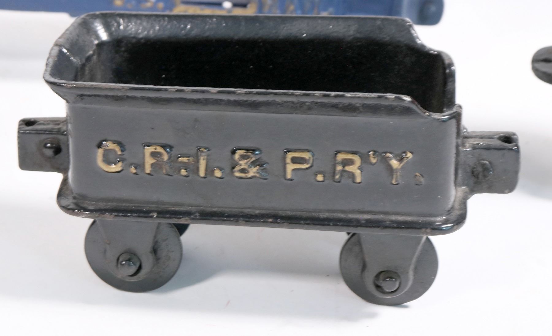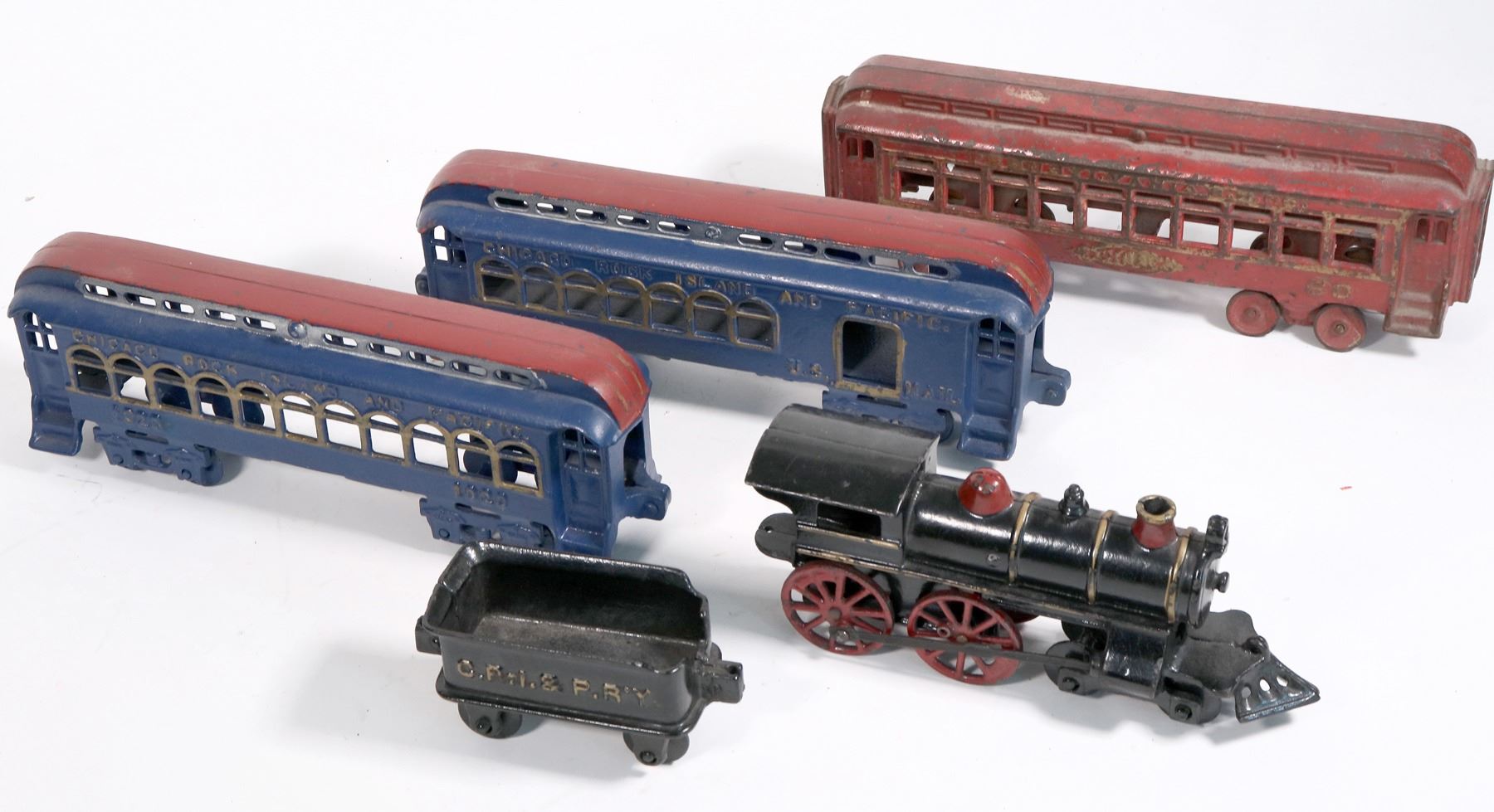 Lot of 5. Loco/Tender, three coach/passenger cars. All, but one coach car, show minimal signs of wear. Paint is in very good condition (except one). One of the more complete sets out there.in this condition. Not sure of mfg. , probably Dent.