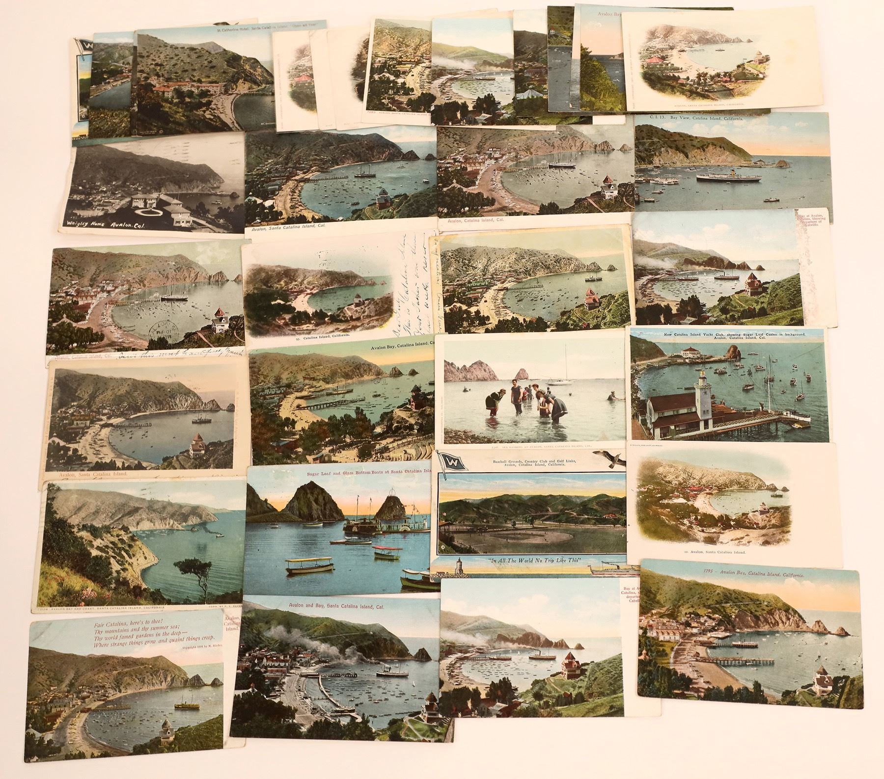 Lot of 36. Twelve postmarked. 1904-26 : L.A., Avalon, Poughkeepsie N.Y, Philadelphia PA, Middle City Station. Mostly the same view, however, they show the progression of Catalina Island’s growth over time. See the Sugar Loaf before they put in the first Casino. The first Casino (1918-28), which was smaller than the “newest” one (1929-), was dismantled and it’s frame used at the Catalina Bird Park for “the World’s Largest Bird Cage”.