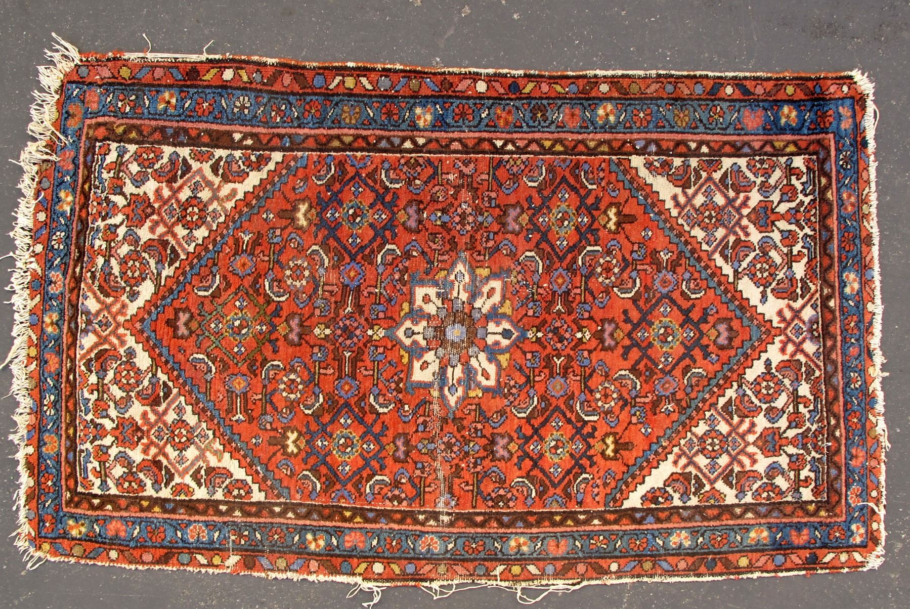 Soumak is a kind of embroidery weaving technique which is unique to Armenian weaving culture though we can see it used in Azerbaijan as well. Armenians weave their Soumak on with thicker additional weft which wraps diagonally around wefts and through warps. This technique is very much more elaborated than all other kilim weaving. Has fray on right side & shows some wear. Please inspect. 31" x 55". State: City: Date: 1900's HWAC# 83502