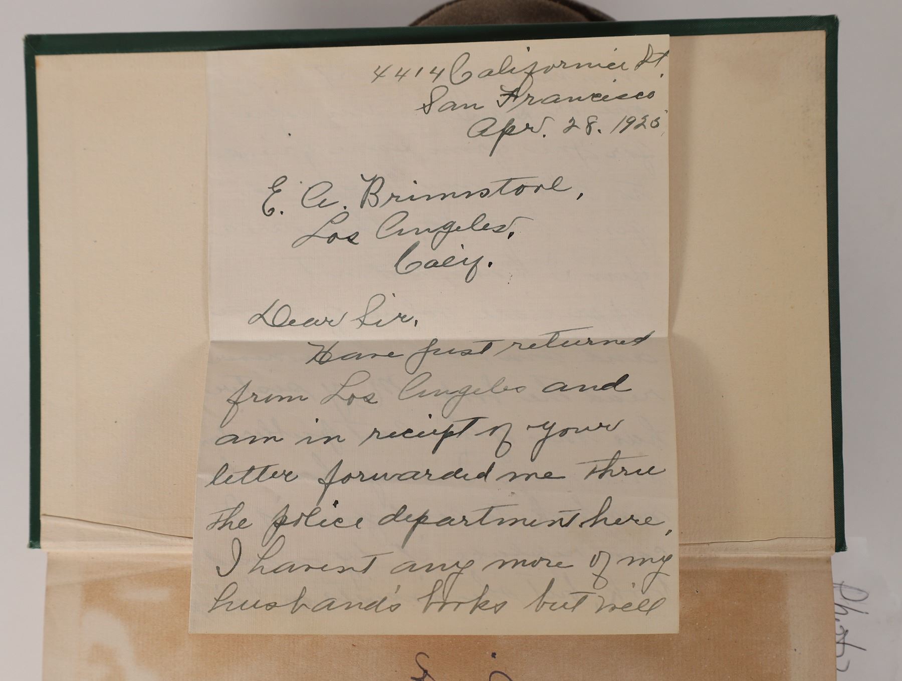 Celebrated Criminal Cases in America by Thomas Duke, 1910. Key criminal cases, about 110. San Francisco, other West Coast and more. Signed 1925 letter from Ella Duke attached to inner front board. California