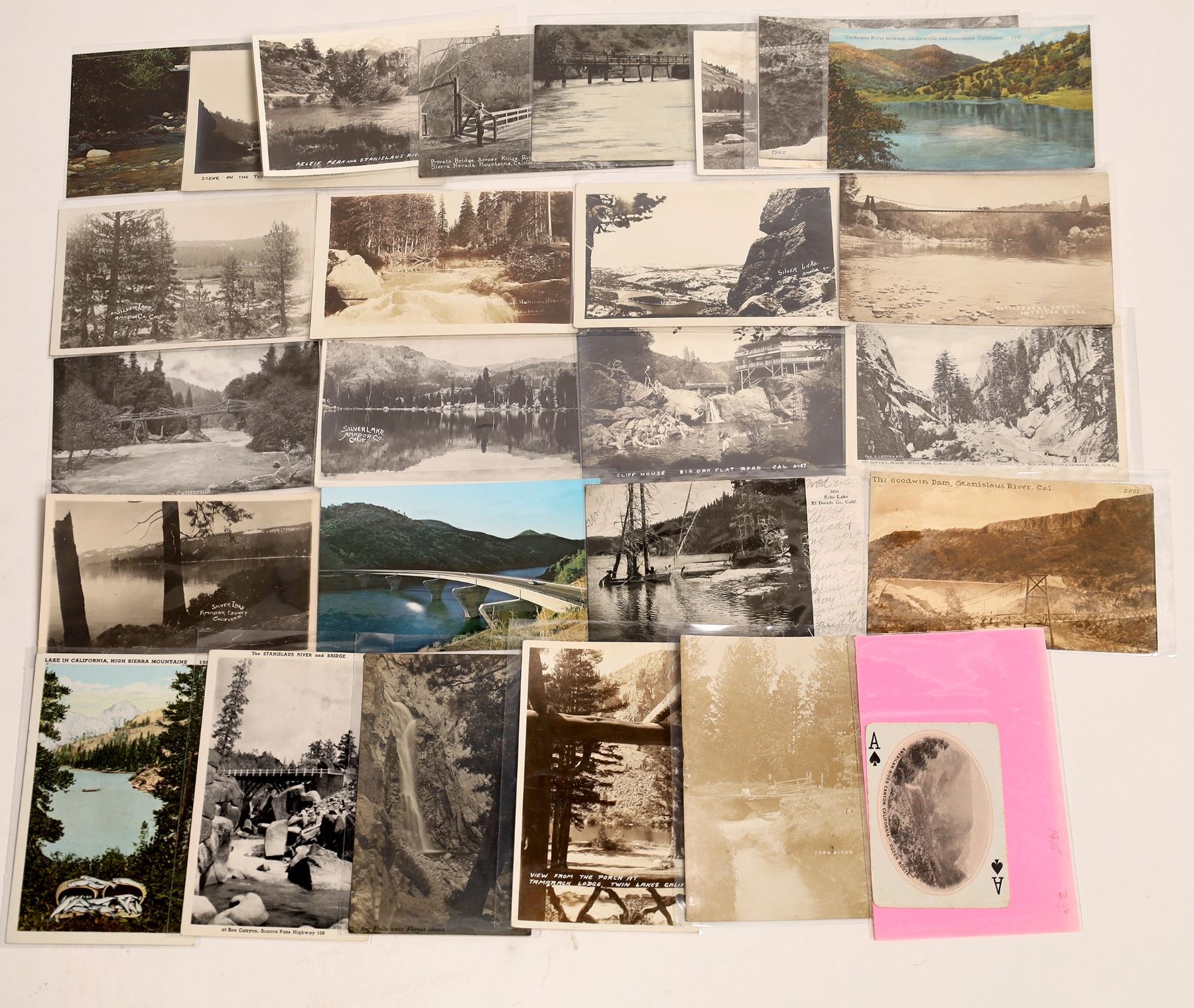 Scenic and Historic. Lot of 27. Twelve RPC's: Includes Forest Home, Twin Lakes, Silver Lake, Big Oak Flat, Baker's Crossing, Box Canyon on the Sonora Pass, Rattlesnake Bridge with men on horseback, Yuba R., Tuolumne R. Eight c1905-1920s: Big Bar Bridge, Echo Lake, Kings R., Stanislaus R. Seven newer cards.