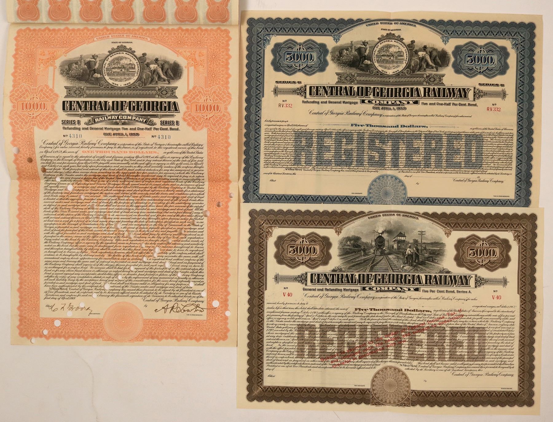 3 certificates. Incorp. 1895. Started as the Central Rail Road and Canal Company in 1833, sold at foreclosure 1891, being reorganized as the Central of Georgia Railway .