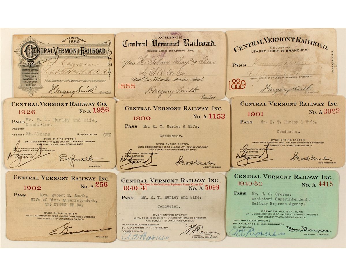 Lot of 10 passes: 1880, 1888, 1889, 1926, 1928, 1930, 1931, 1932, 1940-41, and 1949-50. Prag Collection