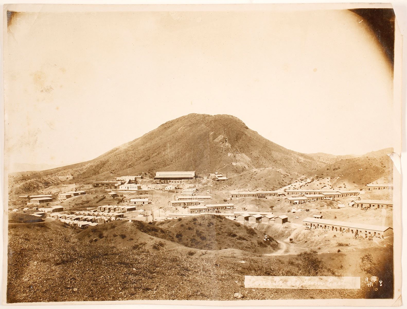 B/W 6.5" x 8.5"photo of Cerro Pr. mine with mill and houses. Exact location unknown. right crease and .25" tear. Date: Location: HWAC# 65005