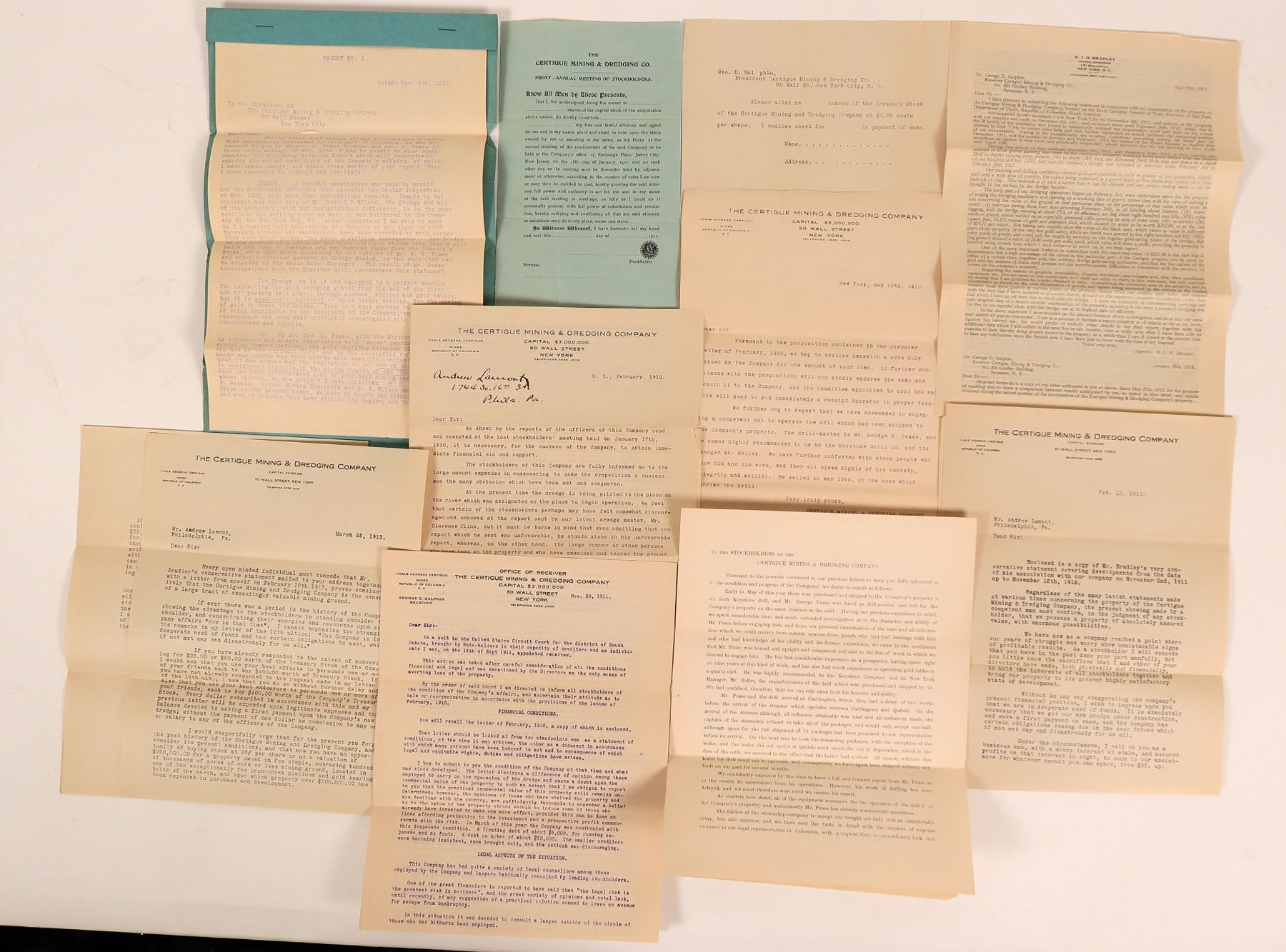 The mine report is five pages of information by Roberto J. White, C.F. Mulitiple letters to the shareholder dated between 1910 and 1913.