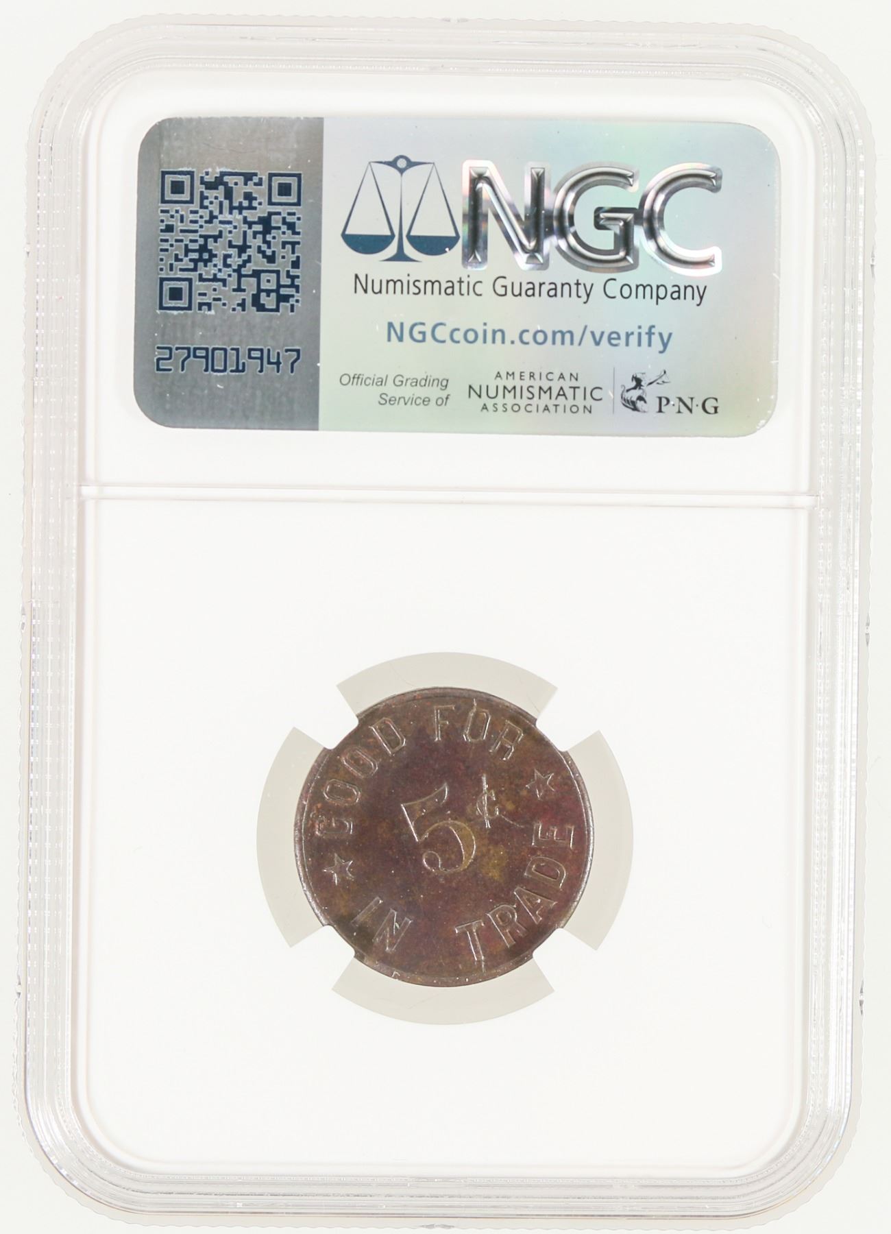 Rare Pershing County town token. NGC certified: AU Details environmental damage.