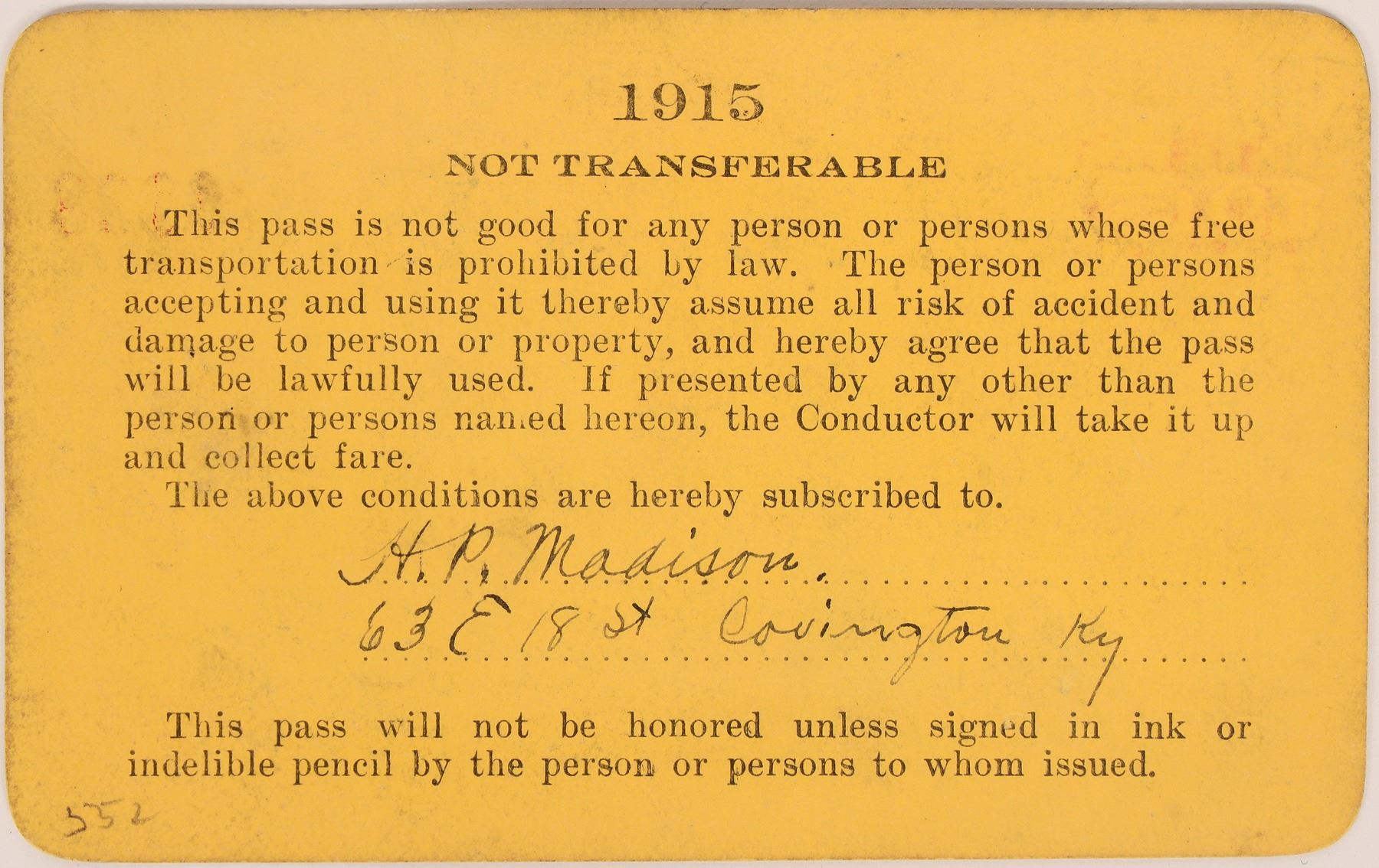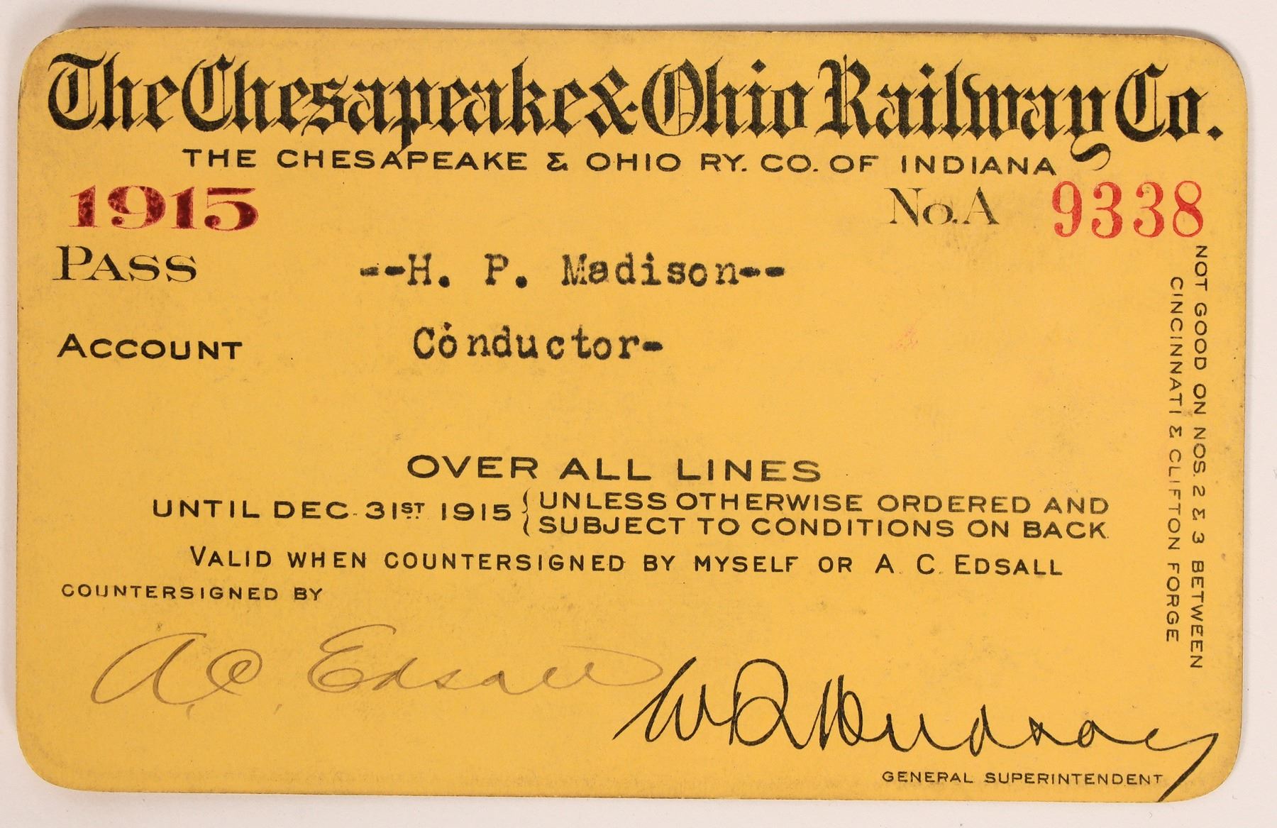 1915 Chesapeake & Ohio Railway Co pass, printed signature of illegible general supt.