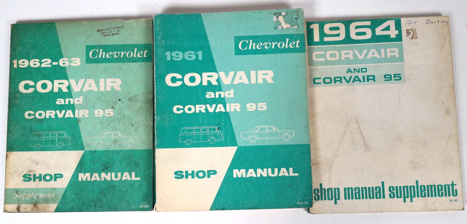 3 Chevrolet Corvair service manuals, 1961, 1962-63, 1964. Essential for the Corvair enthusiast.