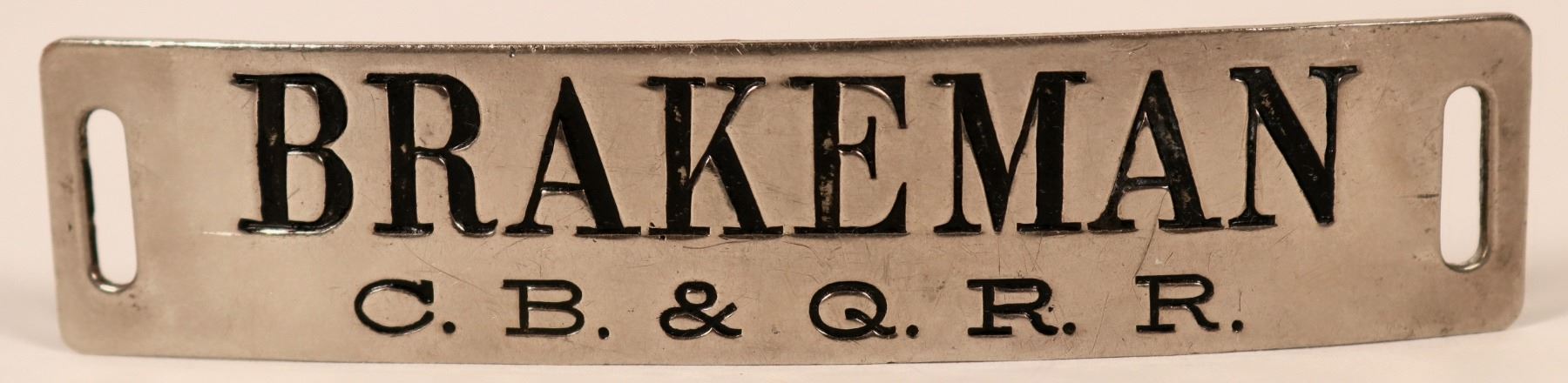 C.B. & Q.R.R. No hallmark on reverse. 3.5 x 0.75" Some wear on reverse and to enamel, otherwise very good condition.