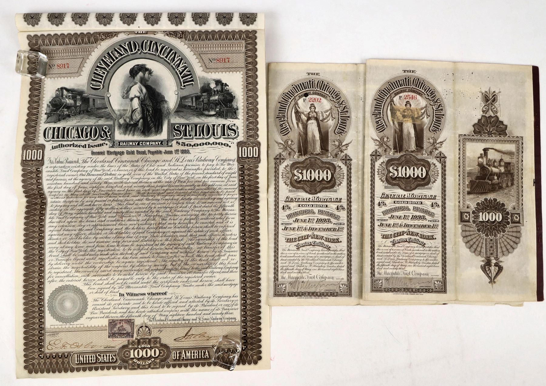 There are three gold bonds for the Chicago & Cleveland, Cincinnati, St. Louis Railway Co. issued in 1893. Please see photo for details.