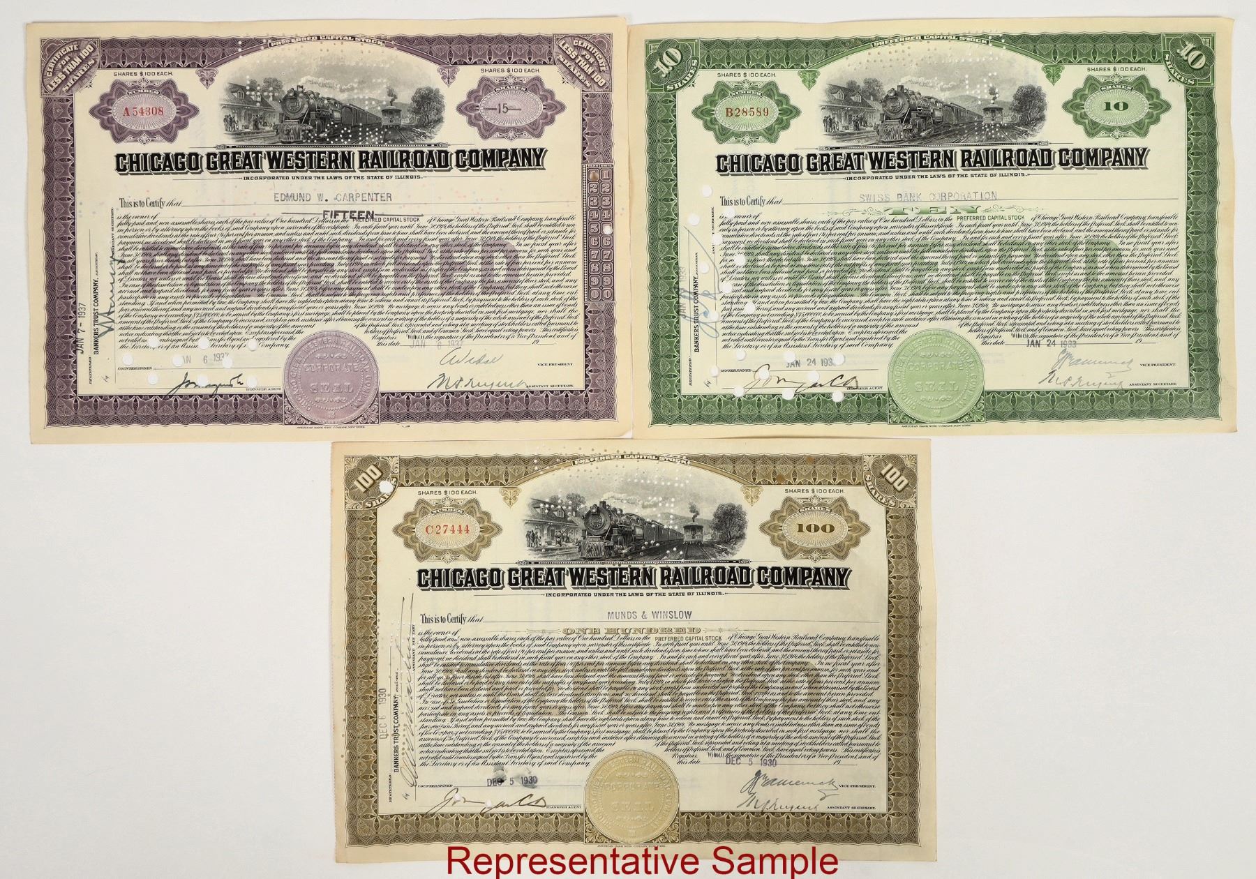 150+. I/C. Issued 1915-37. VG or better. Chicago Great Western Railroad, three varieties,