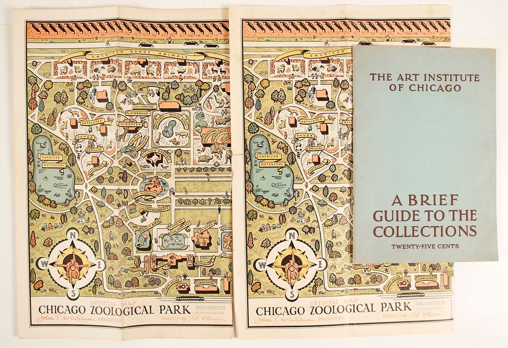 2 Chicago Zoological Park color maps 14.5" x 19". Art Institute of Chicago, A Brief Guide to the Collections 1941 38pp Date: Location: Chicago, Illinois HWAC# 65066
