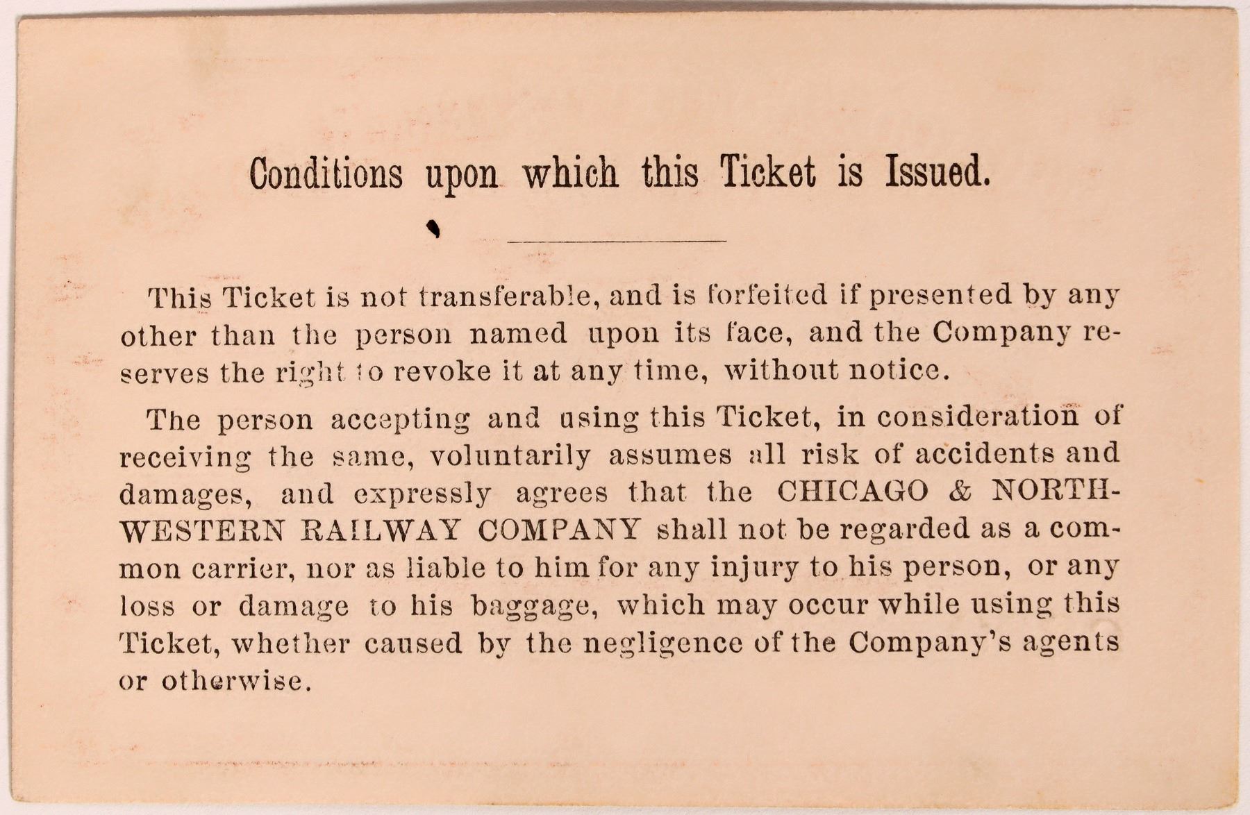 1871 Chicago & Northwestern Railway pass hand signed by illegible general supt. Fine condition.