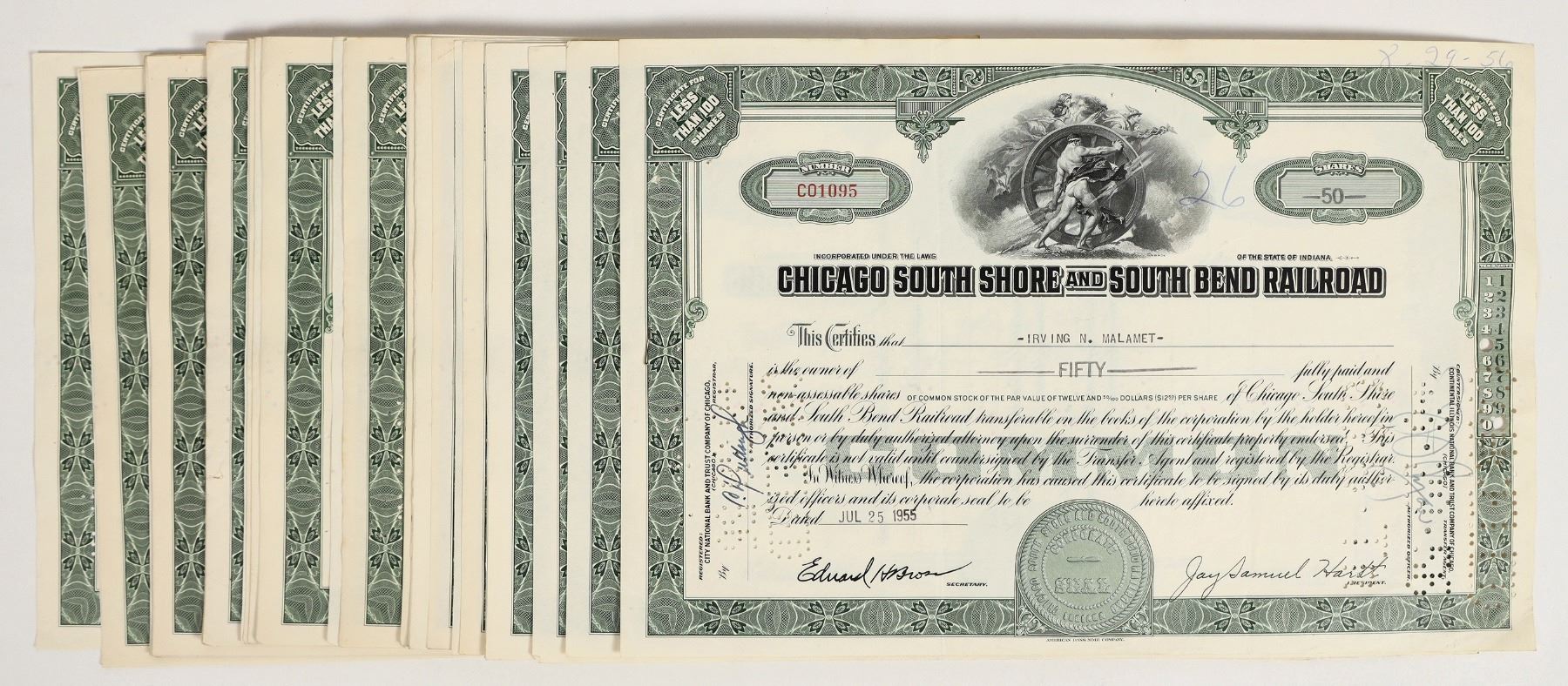 Lot of 49. All I/C. Issued 1955-56. Fine cond. Chicago South Shore and South Bend Railroad., rail system American BNC printer.