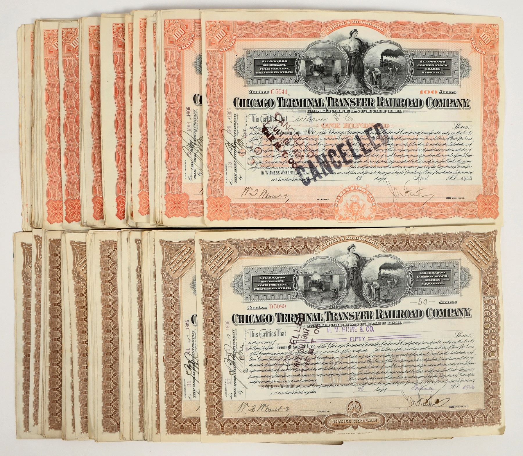 75+ . I/C. Issued 1902-06. VG or better. Chicago Terminal Transfer Railroad Co. some with revenue stamps. Three varieties.
